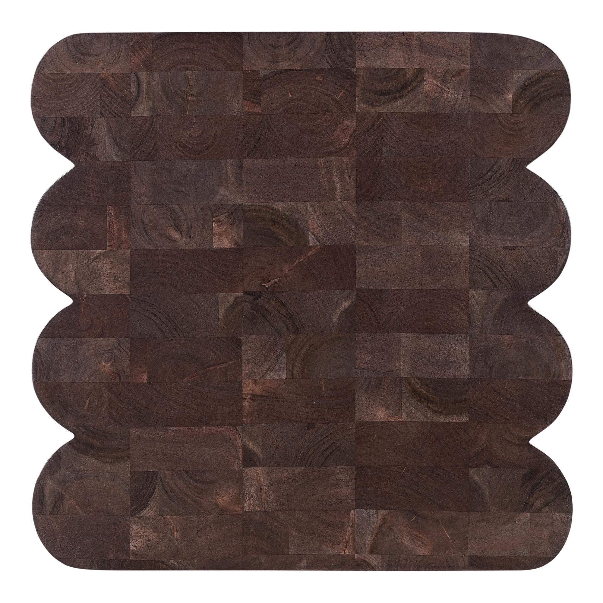 Punyo Punyo is a playful interpretation of rhythm and repetition—a waved silhouette made of Acacia wood brings all that organic energy that calms and rebalances the senses. While this accent table’s expressive profile adds both visual and tactile appeal to any interior setting, this design also utilizes end-grain pieces which come together into a beautifully patterned tabletop. Completing this distinctive piece is a unique seam that runs along with the tabletop joinery technique, visible throughout the piece’s side profile.