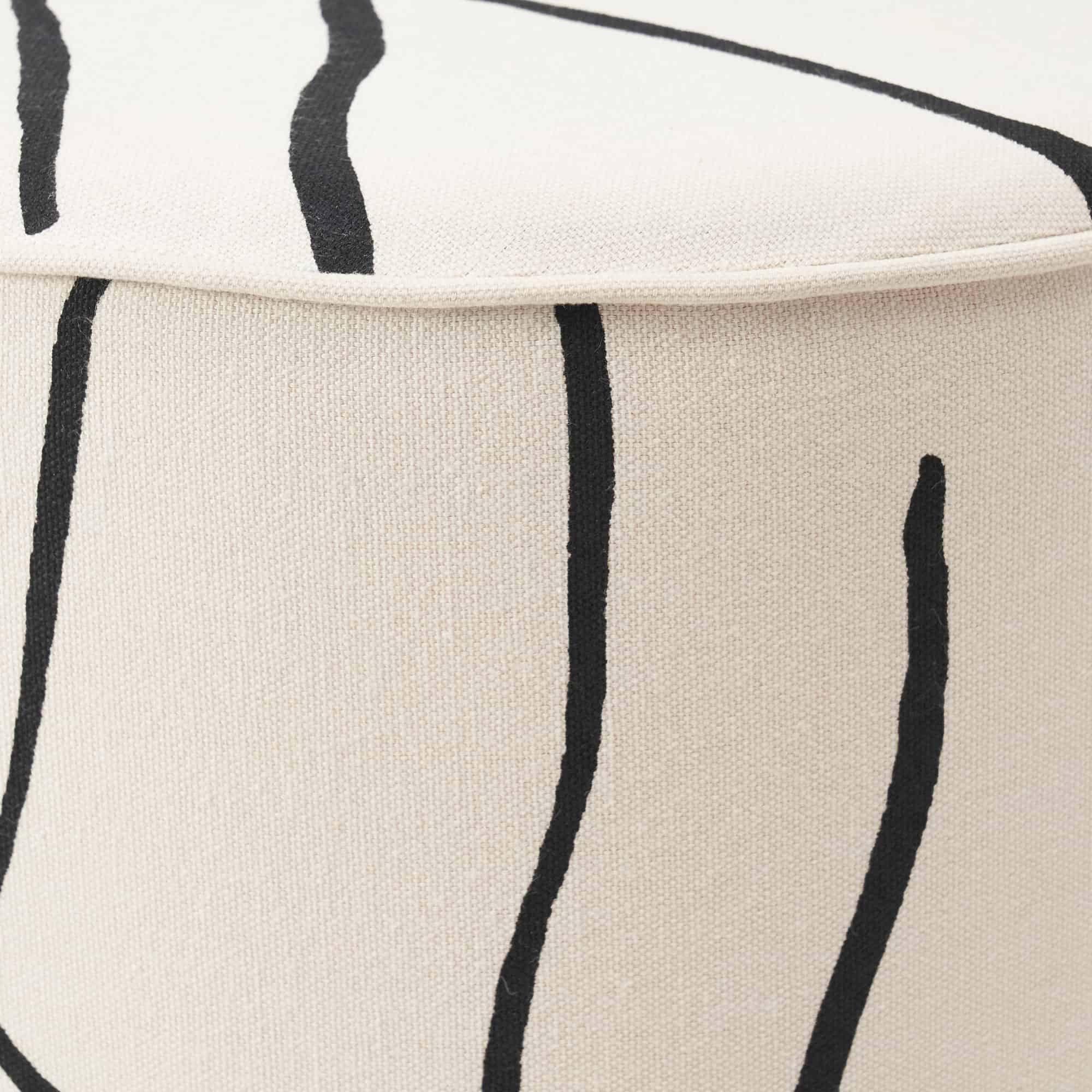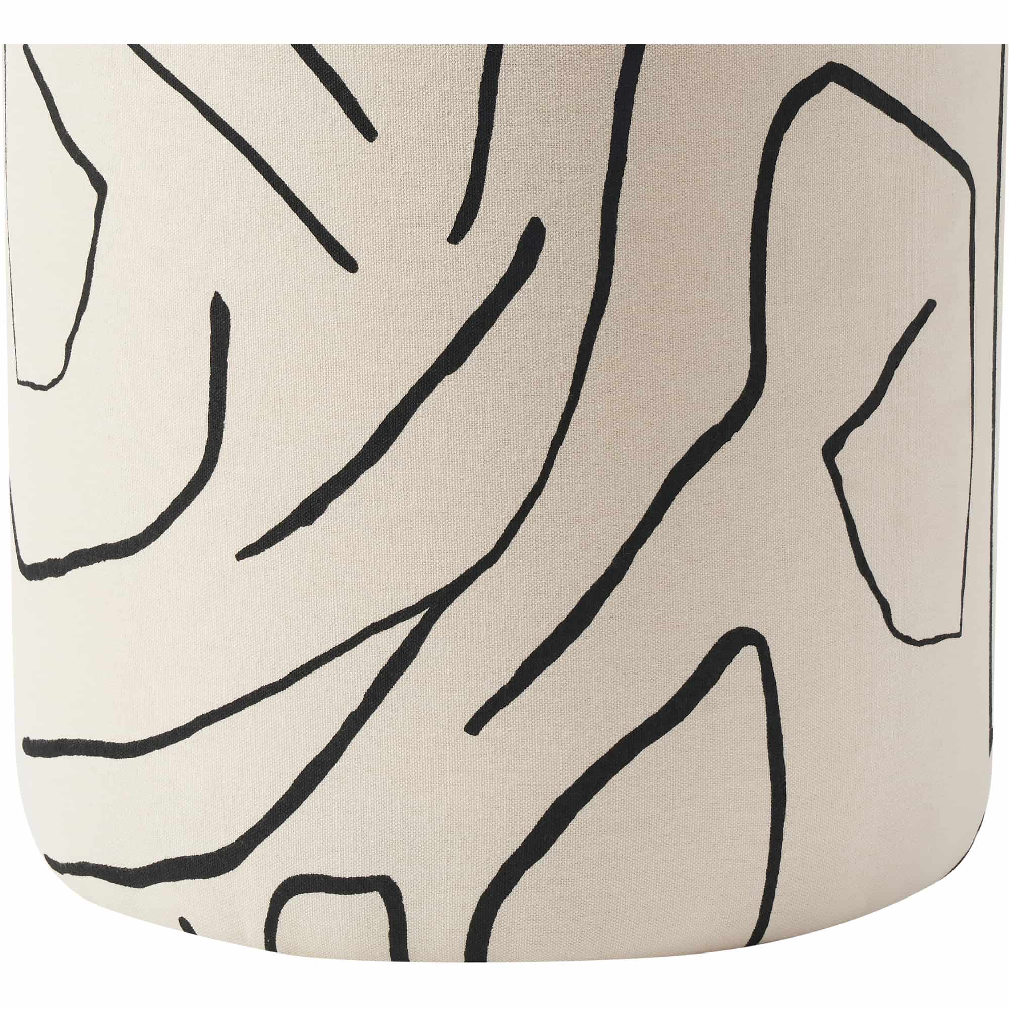 Abstract design leaps off the canvas and onto the stool to form this piece. Showcasing a cream finish and bold black lines along its cotton surface, it has unique qualities that envelops the home in a creative air.