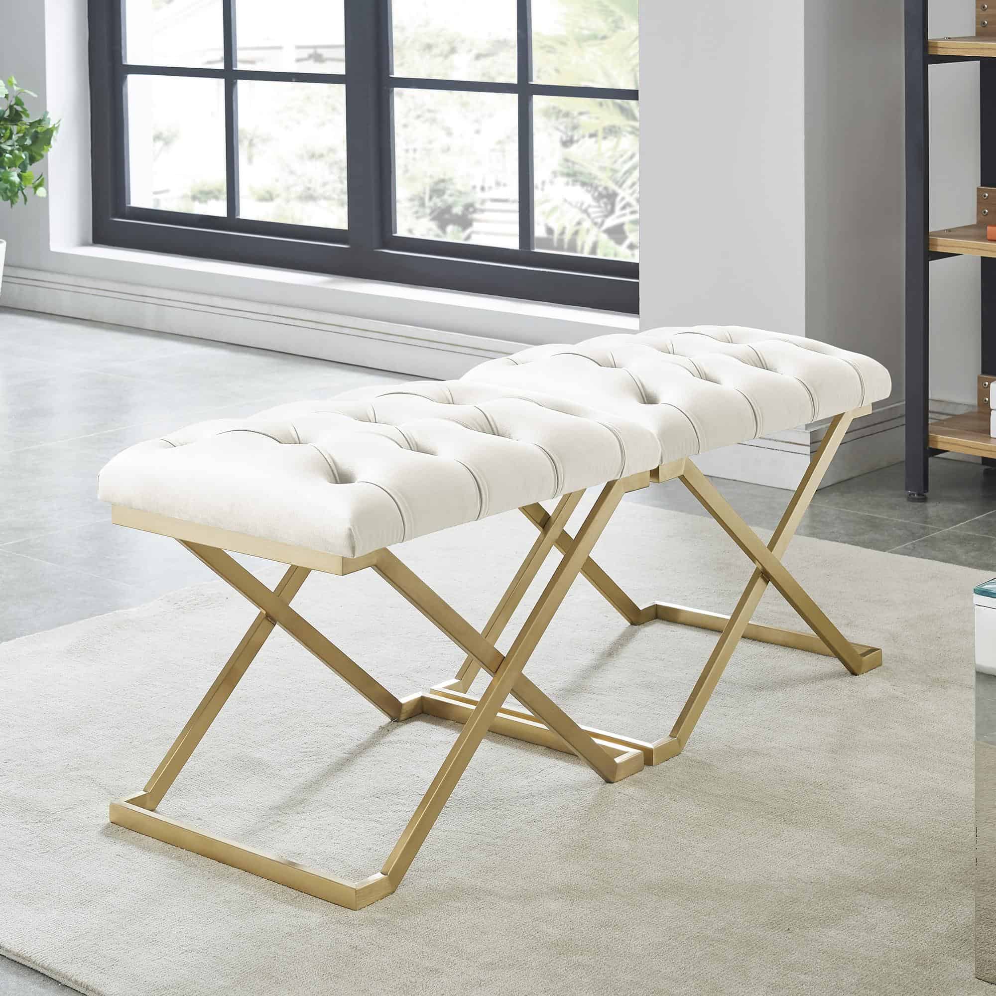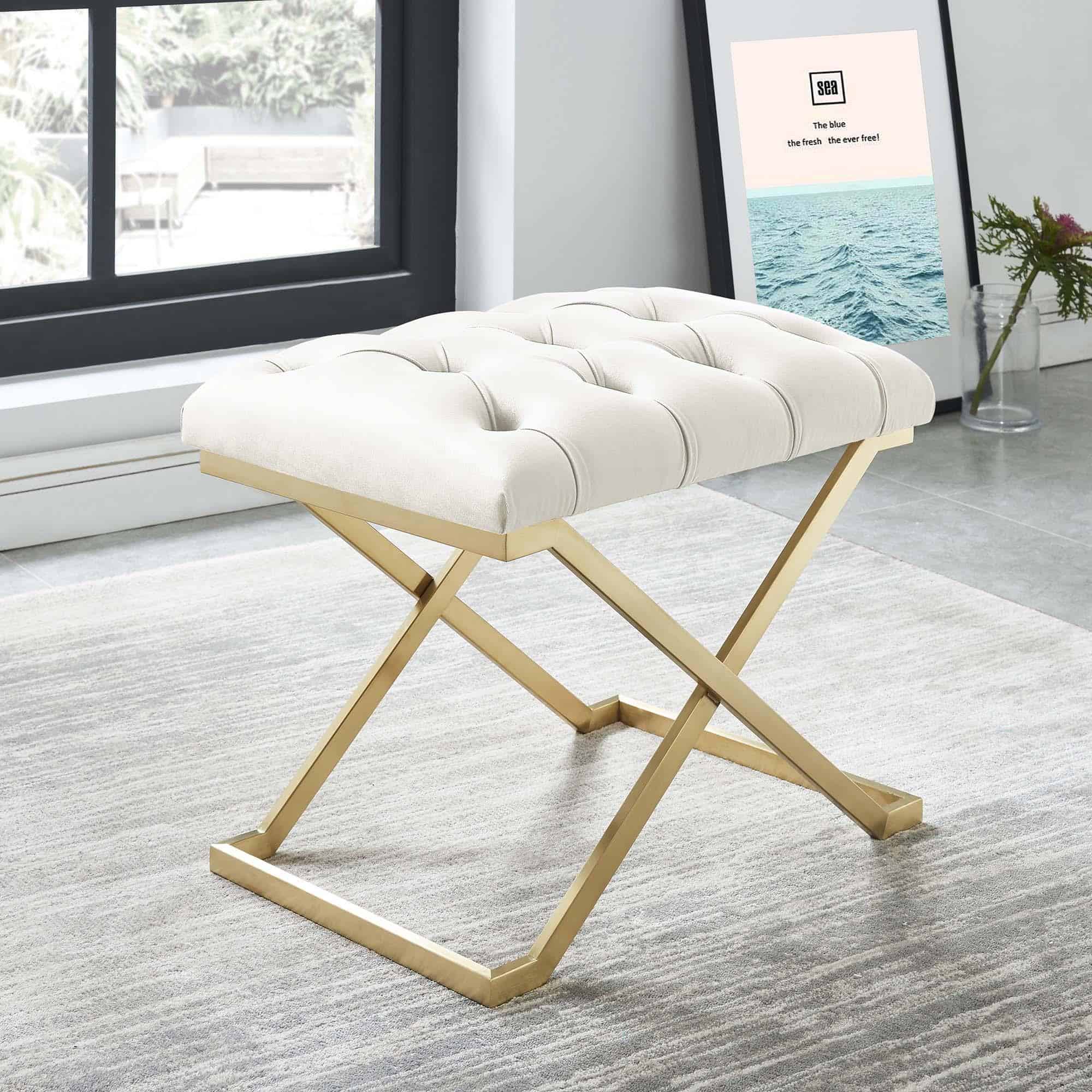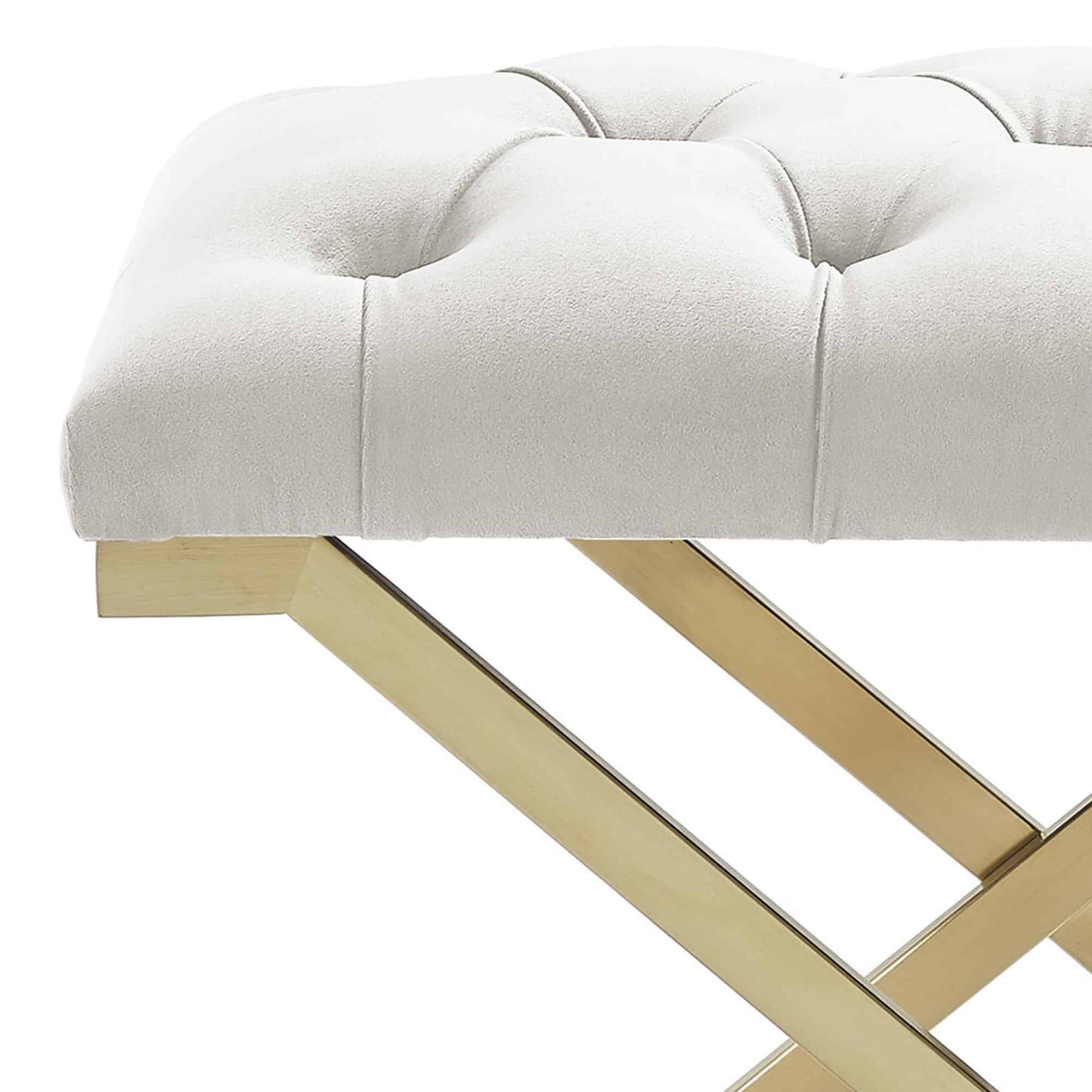 An accent seat as dazzling as the room it accentuates, this single bench pulls out all the stops to heighten its surroundings. Covered in high-end fabrics that give it a sumptuously soft and luxurious feel, the true beauty of this furnishing is exemplified through its abundance of intricate detailing and glamorous finishes. This bench makes for an excellent complement to a makeup vanity, dressing room, bedroom, living room, or sitting room as its small size allows it to fit into any sized space. With its practicality being unparalleled, the only thing more breathtaking about this piece is its stunning design.