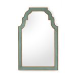 Antique mint green painted wood with antique gold leaf edges and plain clear mirror, designed by Bradshaw Orrell.