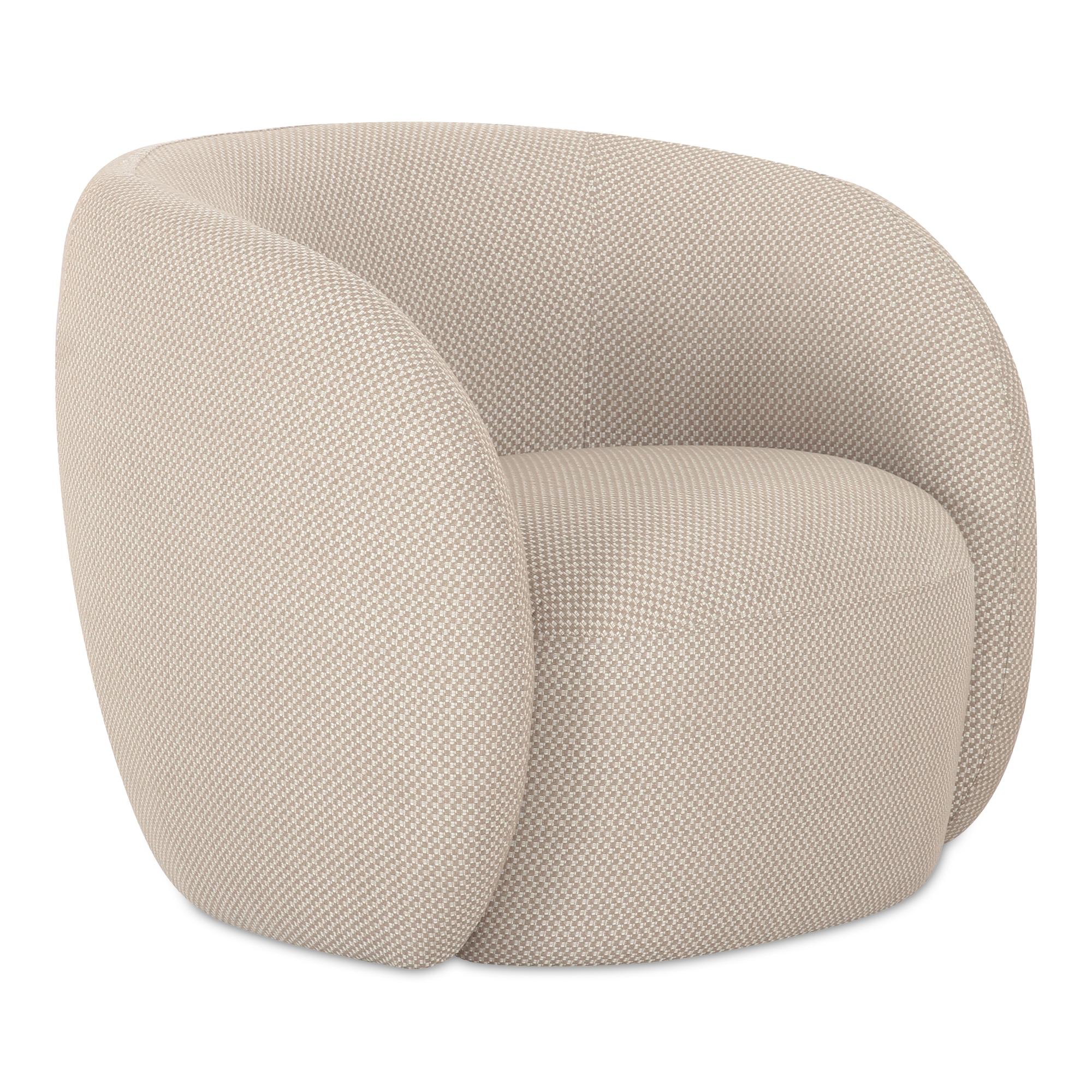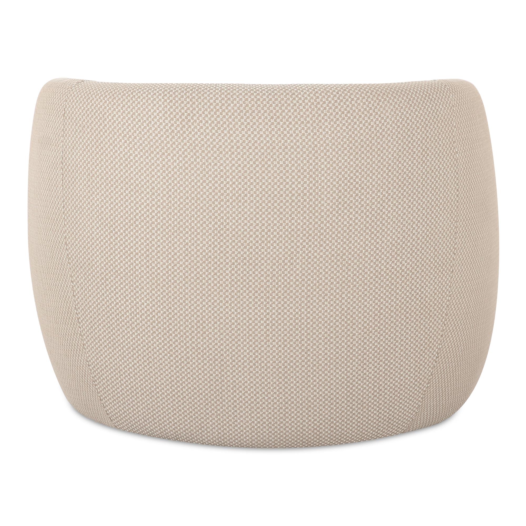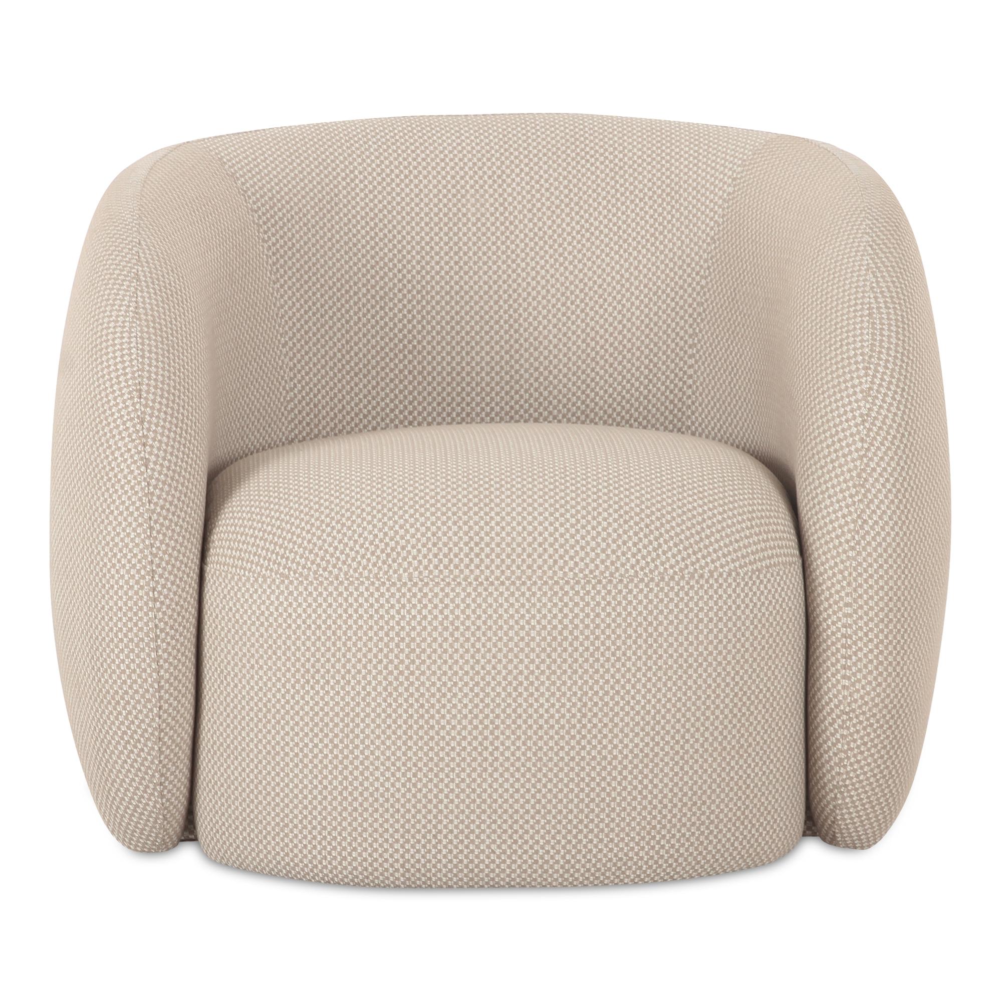 The Rae accent chair’s rounded silhouette and gently curved back match style with comfort. Fully upholstered in an all-weather, water-resistant fabric, it ensures durability without compromising aesthetic appeal, embracing the outdoors with indoor refinement.