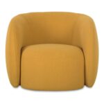 The Rae accent chair’s rounded silhouette and gently curved back match style with comfort. Fully upholstered in an all-weather, water-resistant fabric, it ensures durability without compromising aesthetic appeal, embracing the outdoors with indoor refinement.