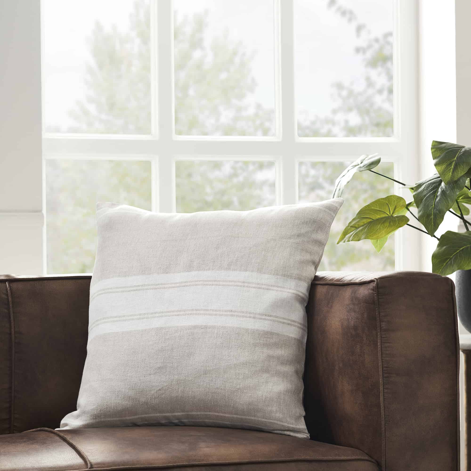 The classic interior’s calming energy feels complete when this throw pillow enters the space. Showcasing a 22-inch square structure with feather down filling, it morphs to those in rest and maintains its build when set solo. Composed of linen with natural and cream colors and subtle strip details, it is at its best when set amid soft complementary elements.