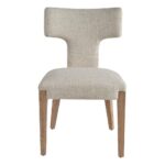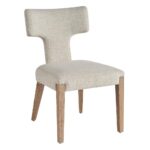 The Raen Side Chair is a captivating blend of modern design and classic comfort. Its fully upholstered body, paired with slender wooden legs, creates a striking silhouette. The distinctive T-shaped back adds a touch of sophistication, making this chair a timeless piece for any dining room.