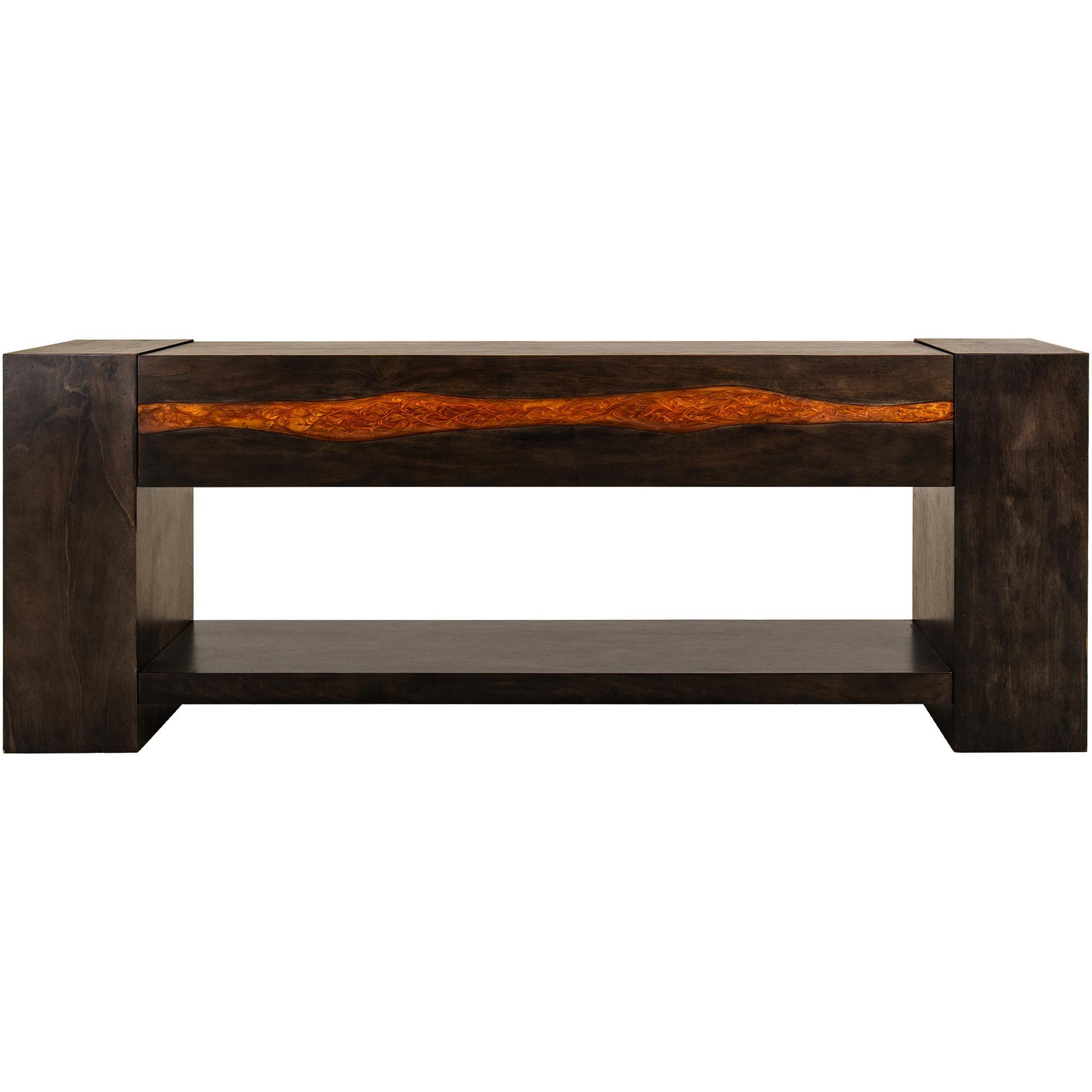 The Raramuri Console beautifully combines artful design and sustainable materials. Each console is crafted from responsibly sourced mango wood, ensuring every piece is unique. This statement piece showcases the wood’s natural beauty and rich tonal variations. Its bold, modern shape is enhanced by a hand-poured epoxy resin inlay and copper mineral accents that gently catch the light, adding both durability and visual interest. Designed to draw attention from every angle, the Raramuri Console is a future heirloom that brings timeless style and the essence of nature into your home.