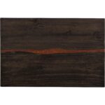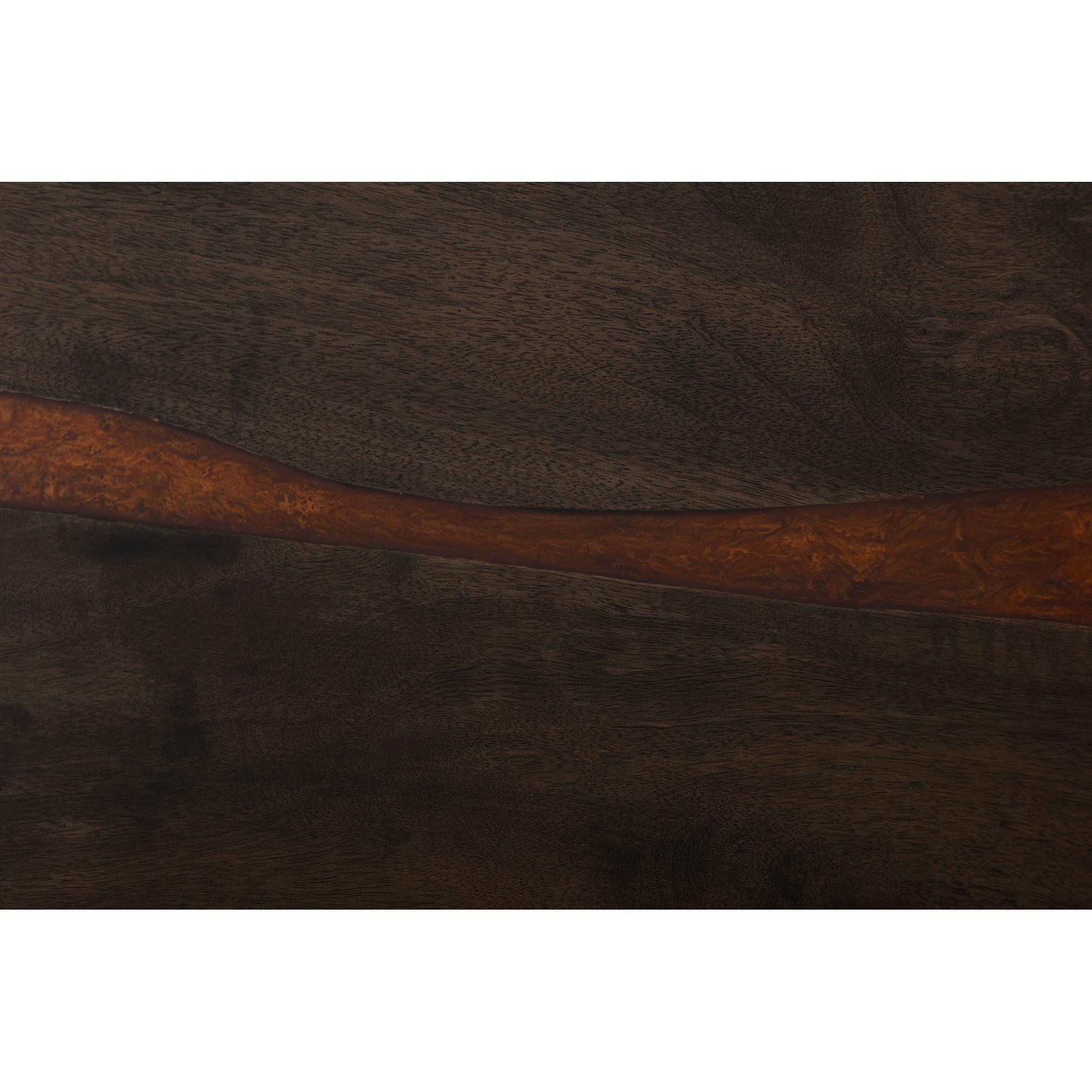 - The table’s top is enhanced with epoxy resin infused with copper mineral flakes.