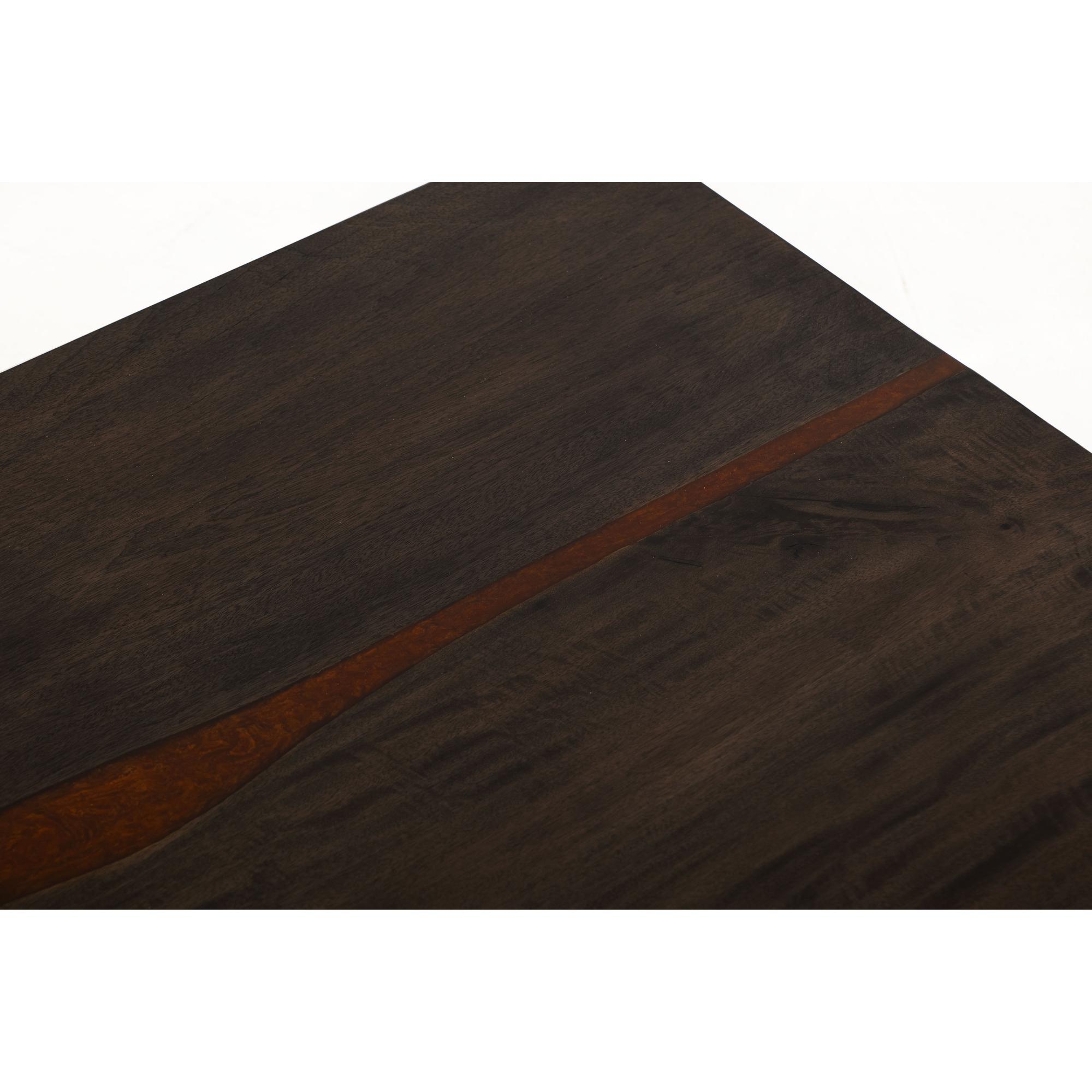 The Raramuri occasional table set is a high-quality addition to any living room, crafted from sustainable mango wood. Each table features a unique natural live-edge top. The tops of both the cocktail and sofa tables are infused with epoxy resin and copper mineral flakes, enhancing their durability and visual appeal. This occasional table set highlights the natural beauty and tonal variations of mango wood. The metal base offers a stable and long-lasting foundation, making these tables ideal for everyday use.