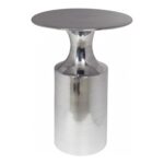 Burnished with a polished finish, the Rassa accent table features Art Deco references with a slender column base that dips to flare out to a metallic, reflective tabletop. The slim form makes it easy to move around and flex to changing needs, while the base features a felt disc to prevent scuffing the floor. Available in polished silver, gold and zinc, this aluminum table’s magnetic charm makes a statement in any space.