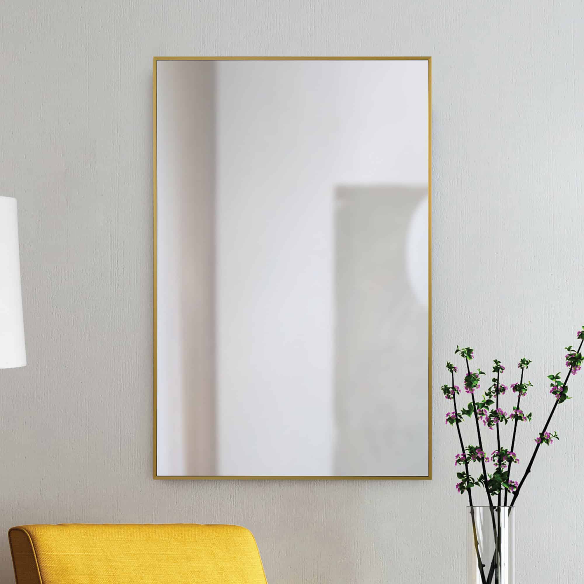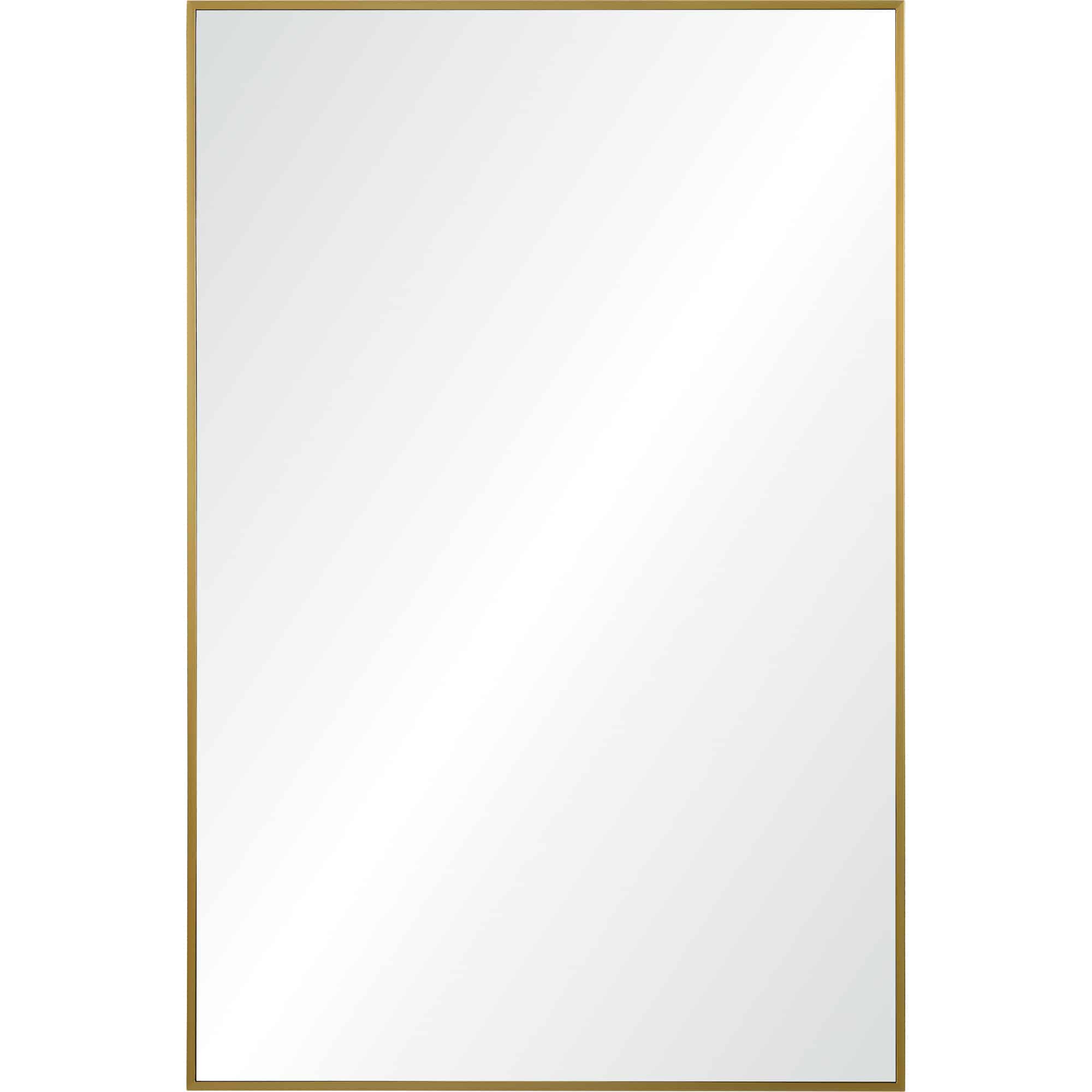 The simple addition of a satin brass-finished iron frame takes this standard mirror design to new heights. Set in the mid-century interior, its radiant warmth is further enhanced by complementary accessories in its midst. It has a substantial structure yet still integrates effortlessly.