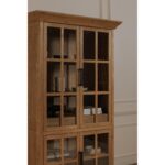 Meticulously crafted from solid oak and oak veneer, the Raymond tall cabinet’s wire-brushed natural finish exudes warmth and texture. The glass front, adorned with traditional molding and a graceful overhang, adds elegance with a contemporary twist. Two interior drawers and discreet cable management provide practical storage solutions.