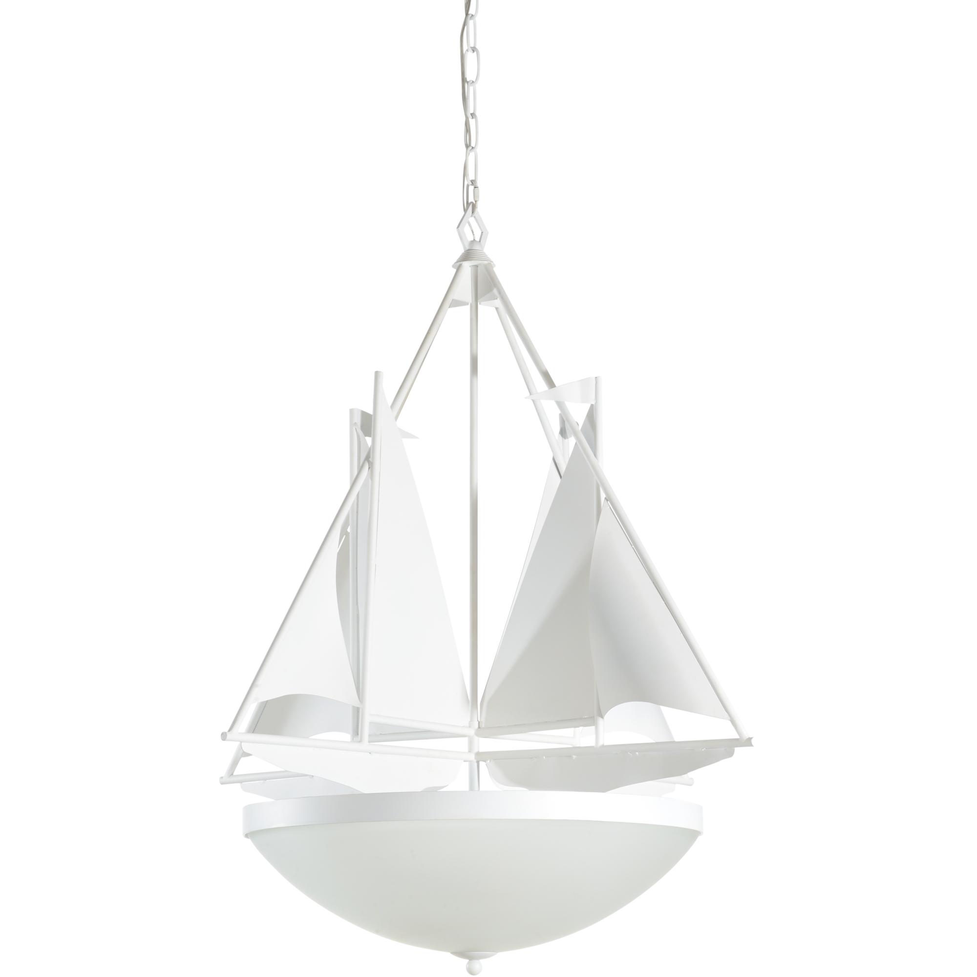 Matte white finish with frosted glass and three lights, regatta is the ideal chandelier for your coastal dining or living room. Comes with 6′ of chain.