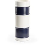Based on nautical racing flags, this crisp navy and white vase works well alone or paired with its companion Regatta Vases (385040,385042) to form a perfect grouping in modern or coastal interiors. Designed by Jamie Merida.