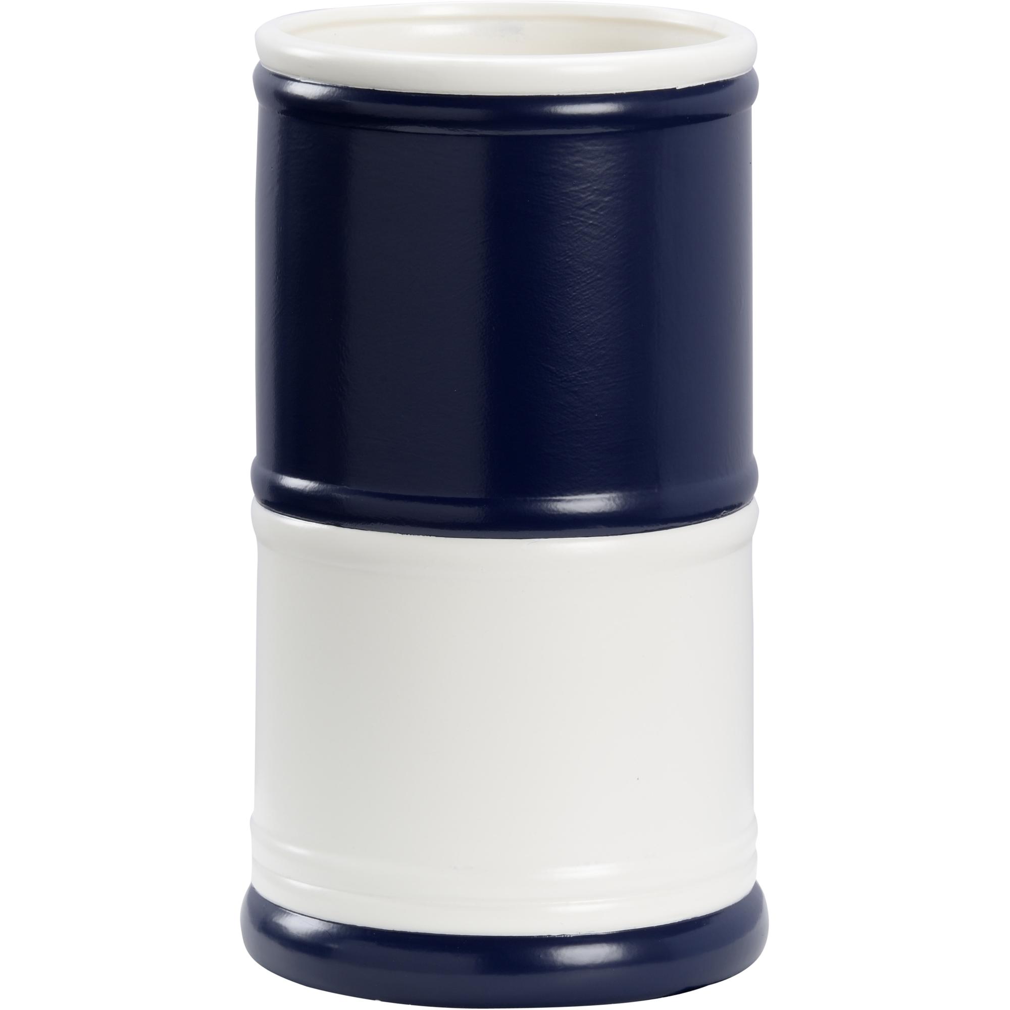 Based on nautical racing flags, this crisp navy and white vase works well alone or paired with its companion Regatta Vases (385127,385042) to form a perfect grouping in modern or coastal interiors. Designed by Jamie Merida.