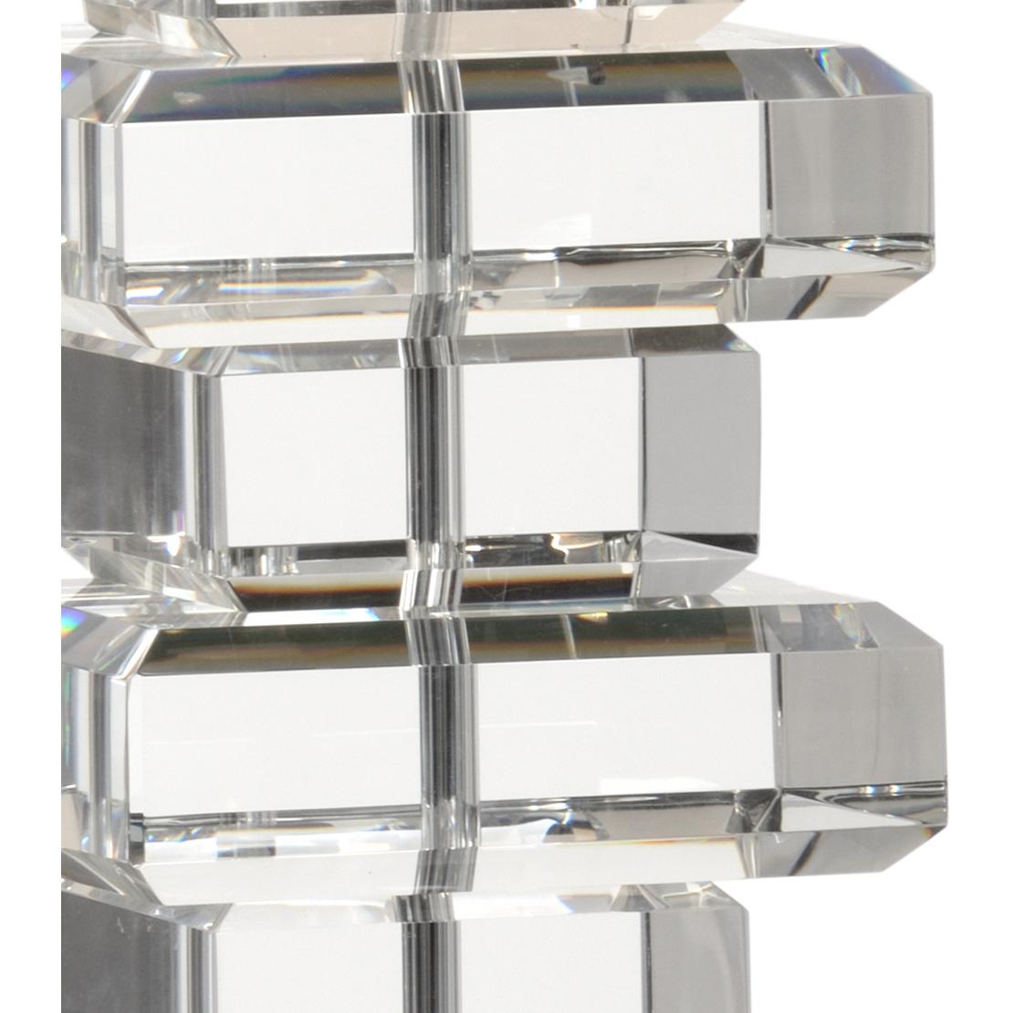 Nine stacked beveled crystal slabs with polished nickel accents.