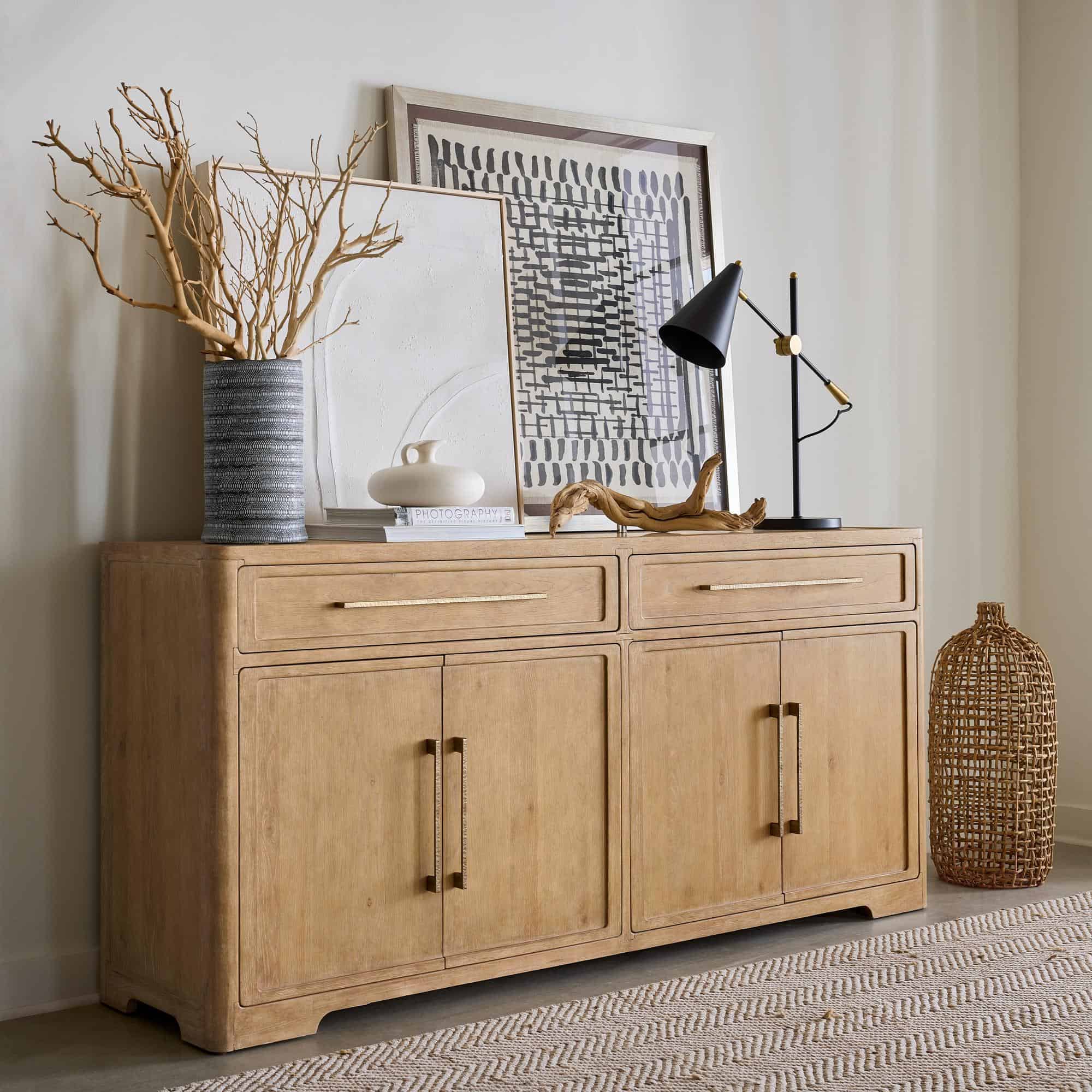 Finish: Dune: Transparent by design to showcase the unique grain patterns of the veneer, Dune is light as sand and smooth as a shore after a receding tide. Soft pewter bar pulls.