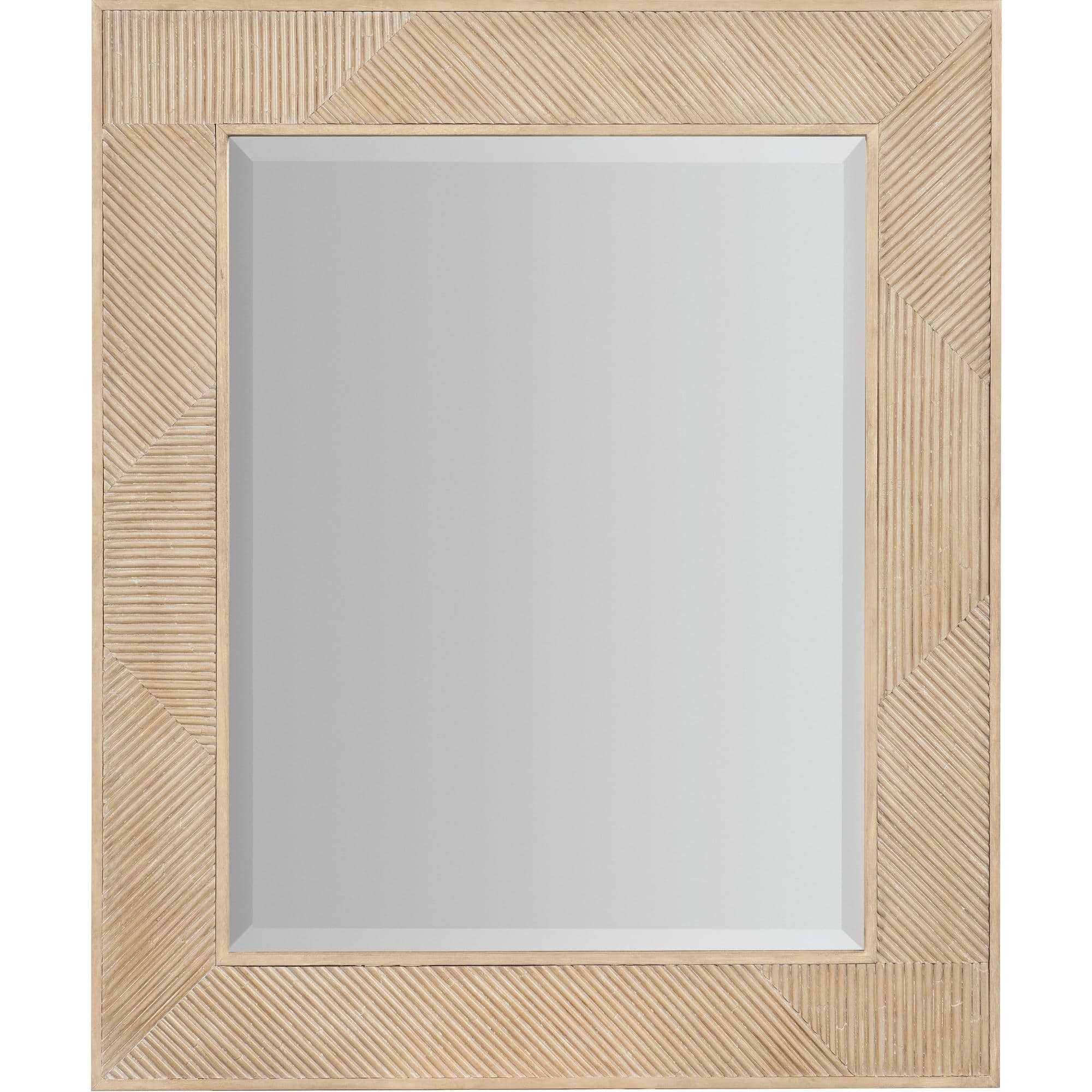 Features: Rectangle shape Beveled mirror Can hang both horizontally and vertically Carved resin in a reeded design
