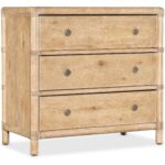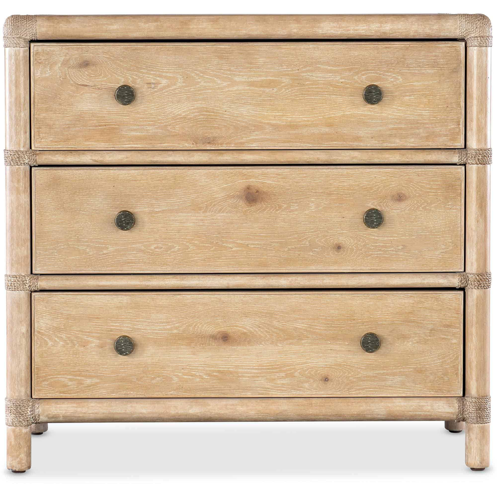 Features: Three self-closing drawers Levelers Rope accents