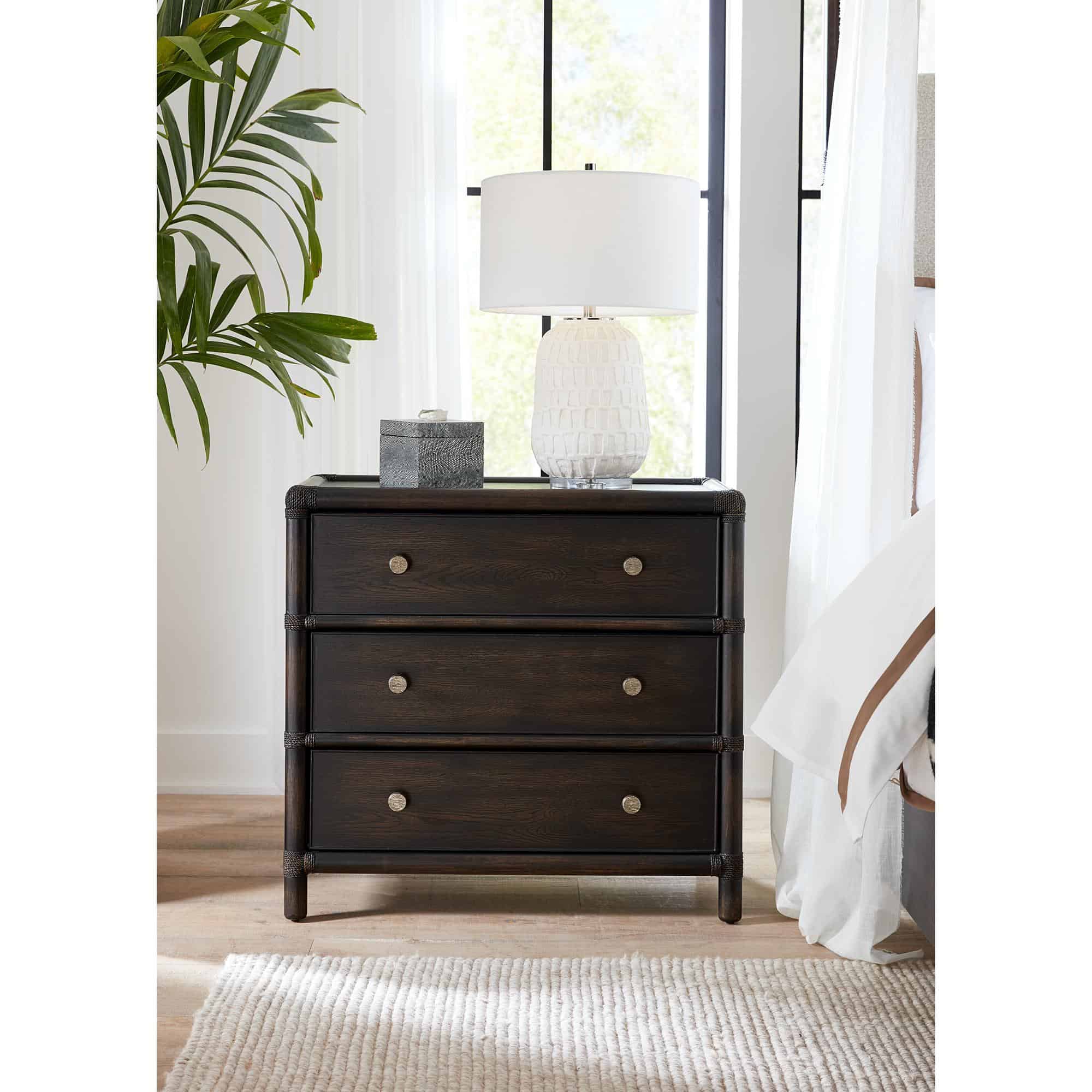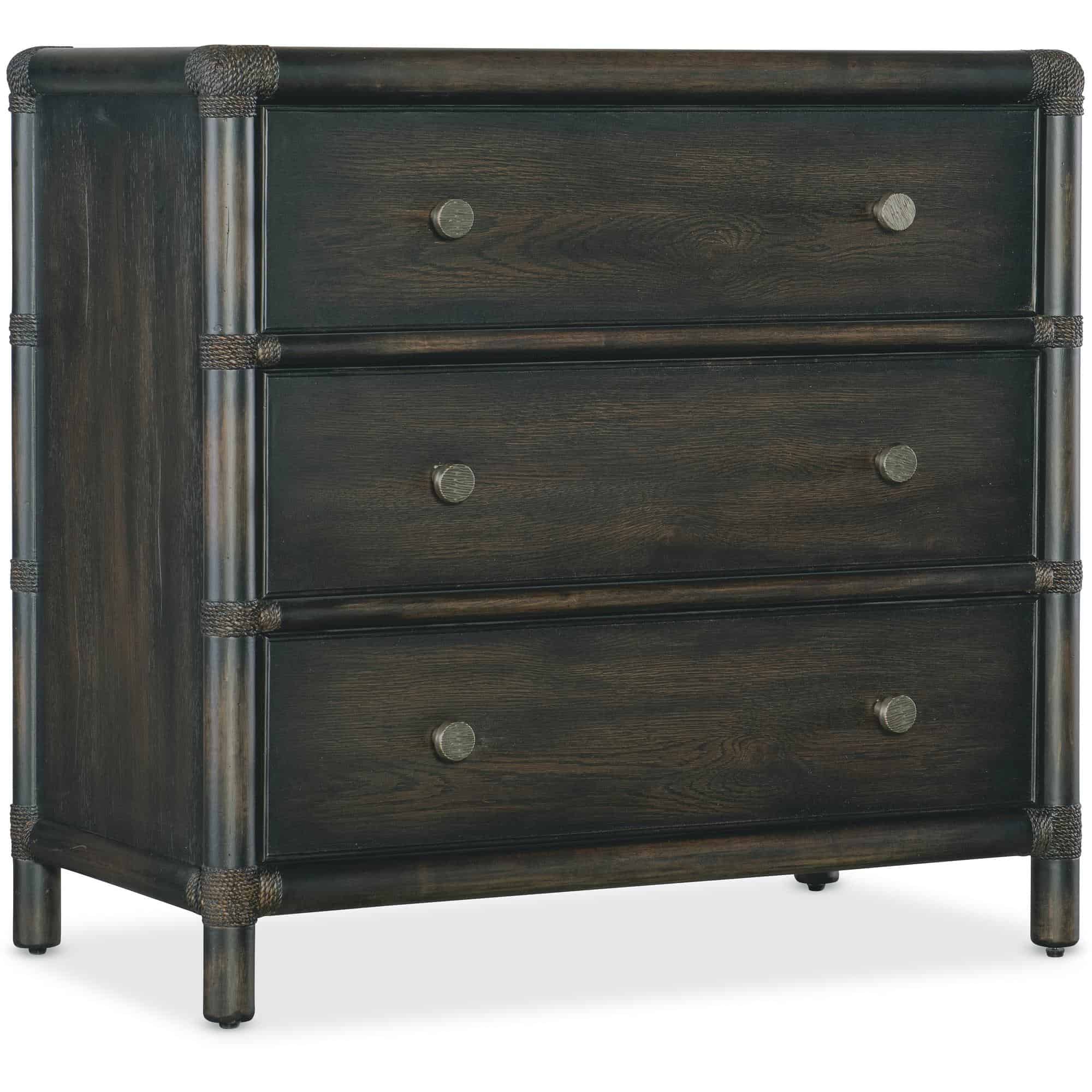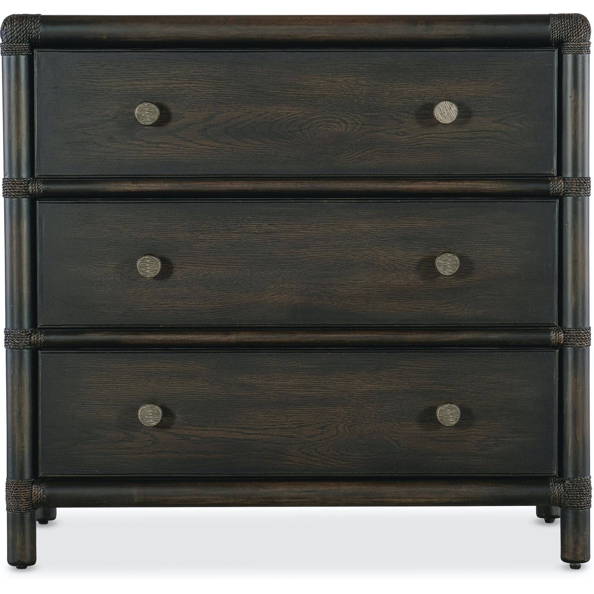 Finish: Black Sand: Transparent by design to showcase the unique grain patterns of the veneer, Black Sand was inspired by the black silk sands found on the shorelines of exotic beaches of Maui and Tahiti. Soft pewter round knobs.