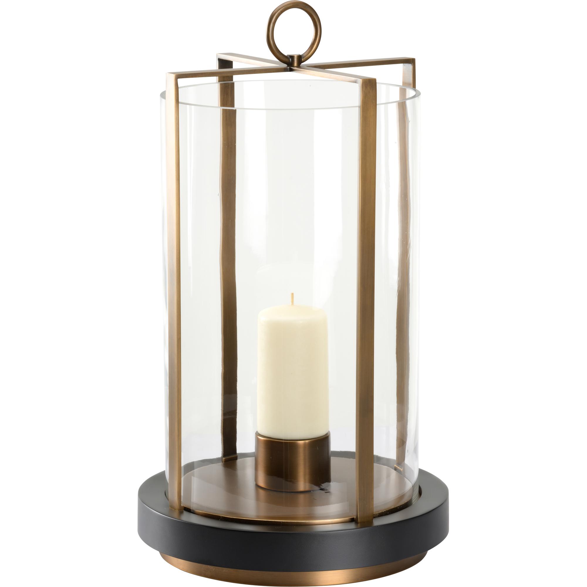 Handsome black and antiqued brass candleholder with circle accent. Designed by Bradshaw Orrell.
