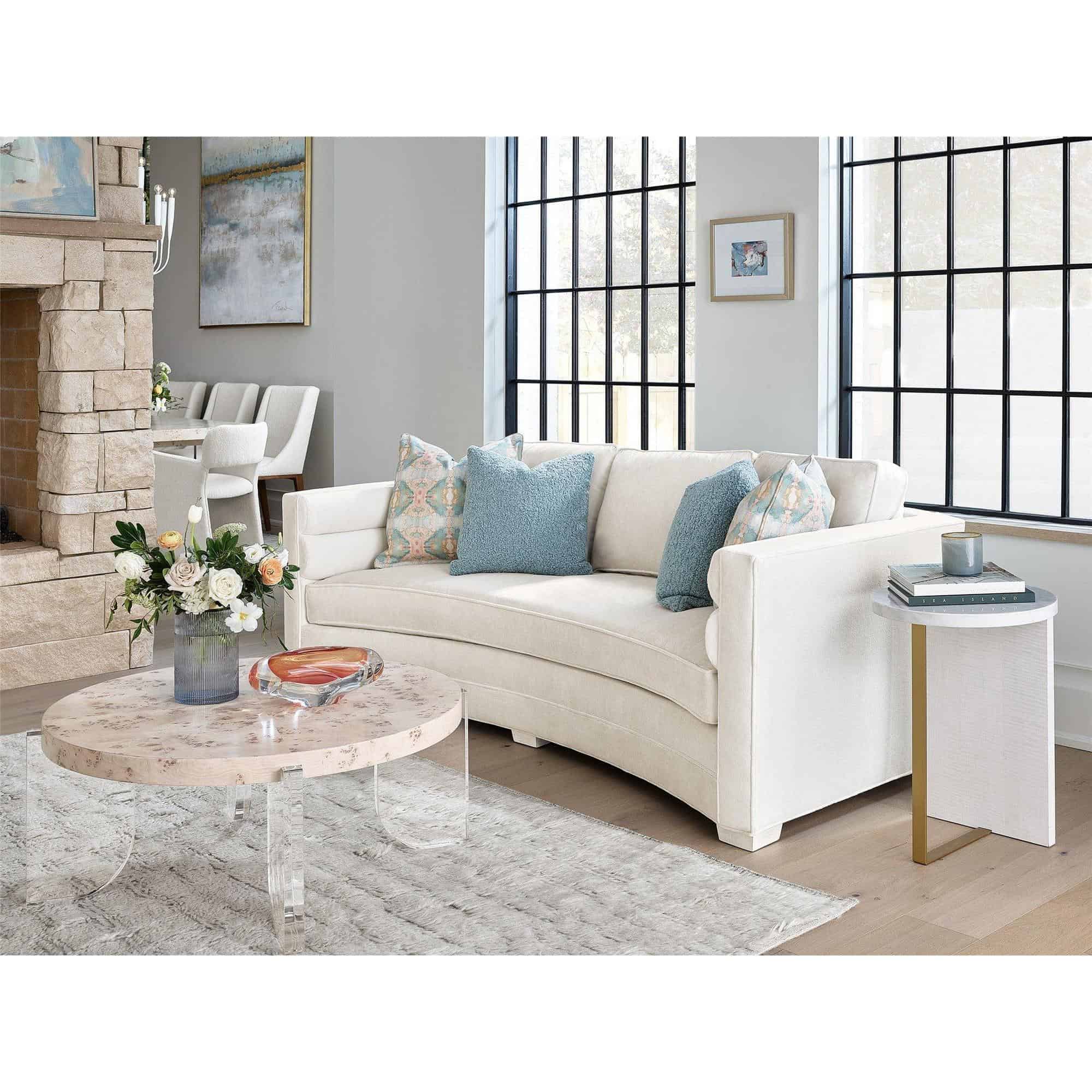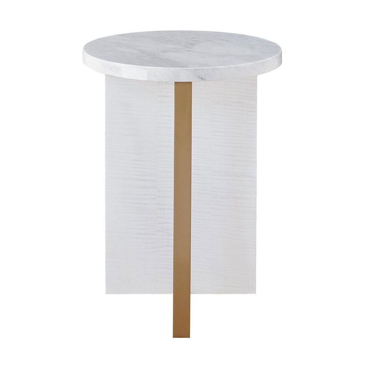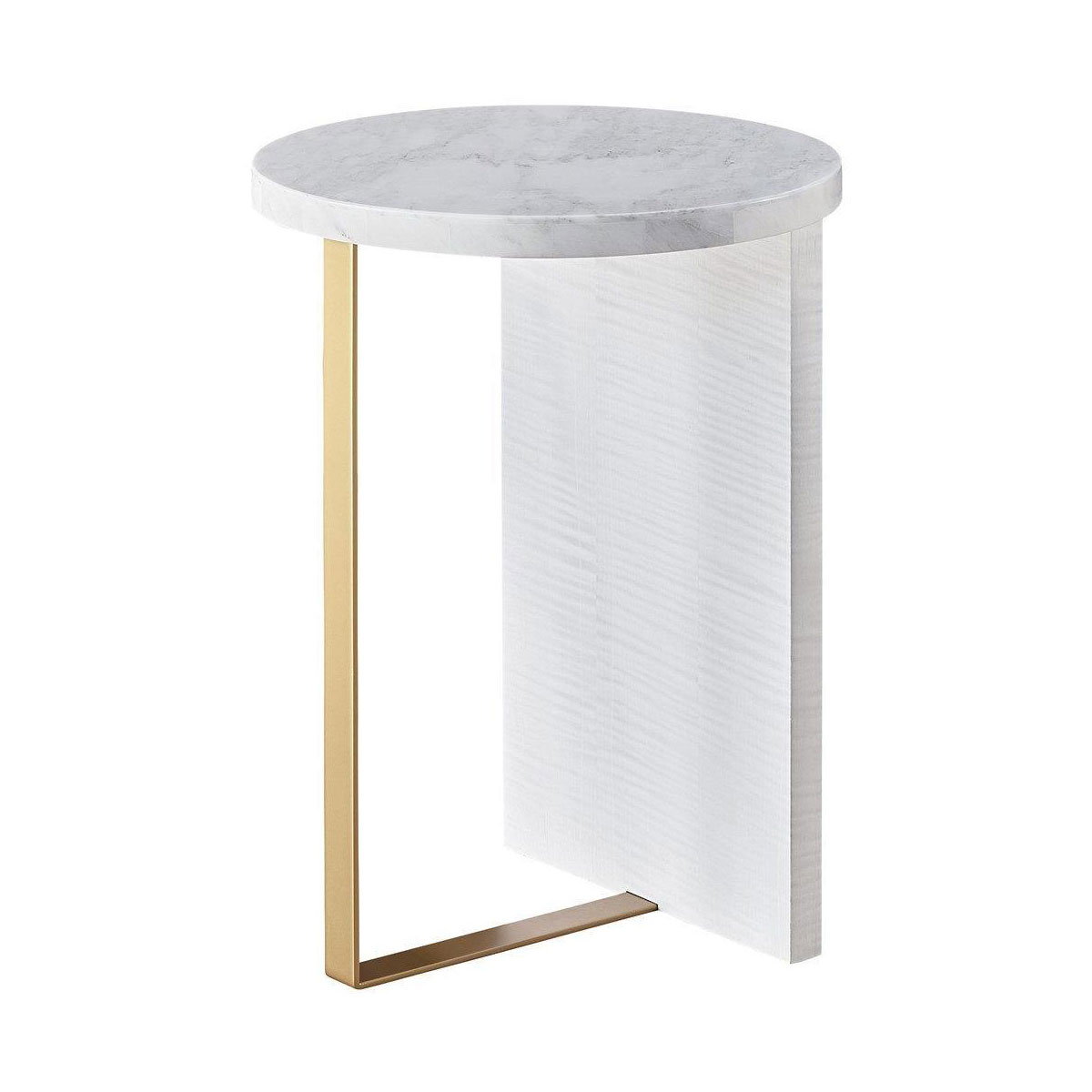 The Reverie Round Accent Table finds a delicate harmony between abstract aesthetic and serene style with a combination of materials and shapes.