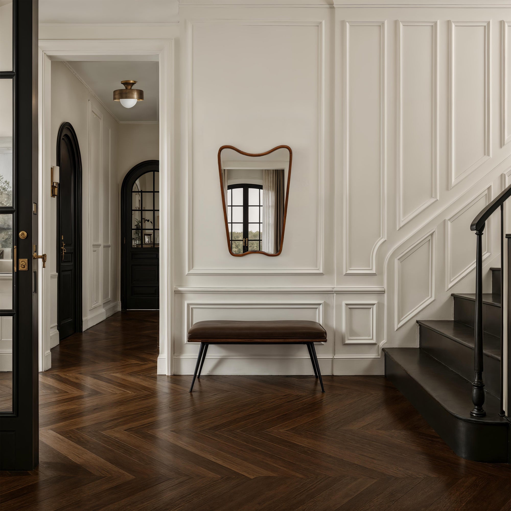 Give any room a fresh sense of character with the Reverie wall mirror, designed to balance elegance and timelessness. Its gently rounded form introduces subtle softness, while the warm walnut-finished frame delivers a refined, upscale touch. Completed with clear, silvered glass for a distortion-free reflection, this mirror enhances both everyday style and the overall ambiance of your design project.