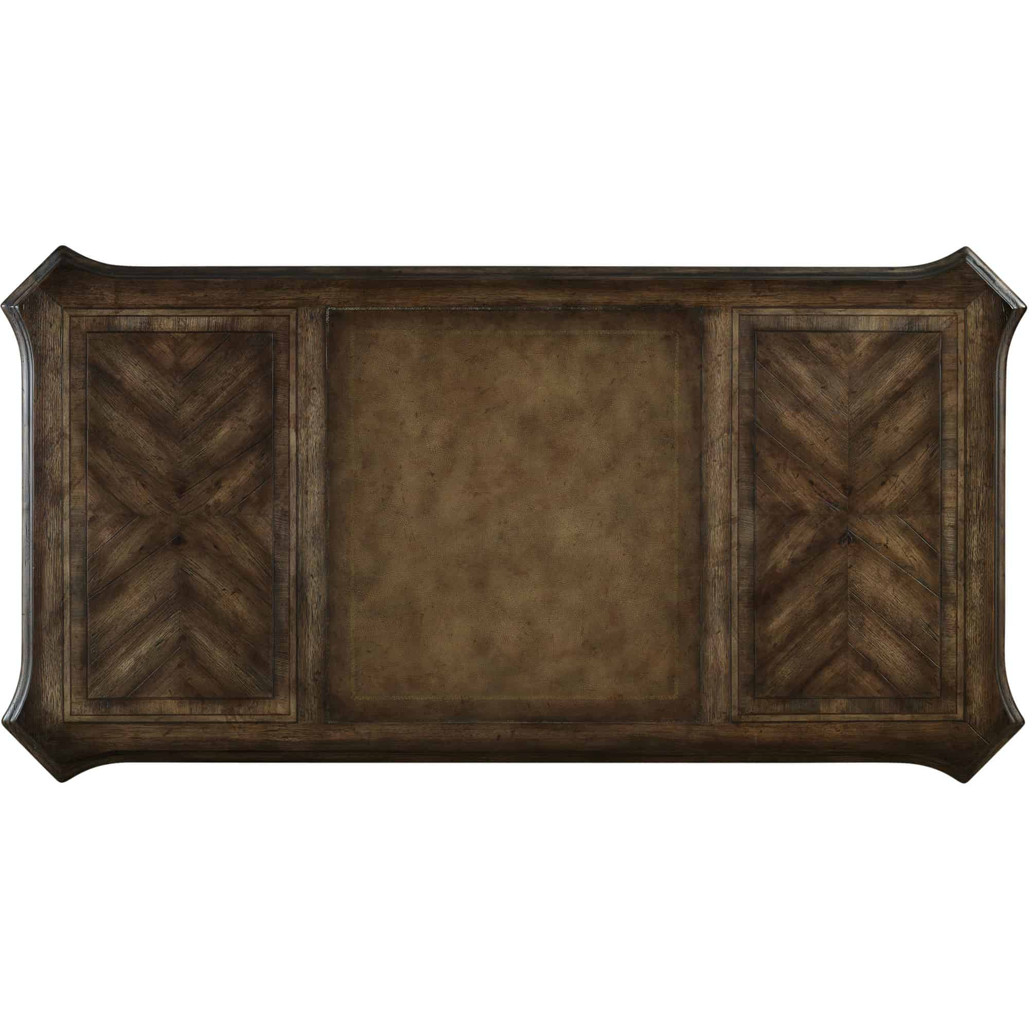 The classic chevron veneer pattern used on the office desk top was adapted from a French antique