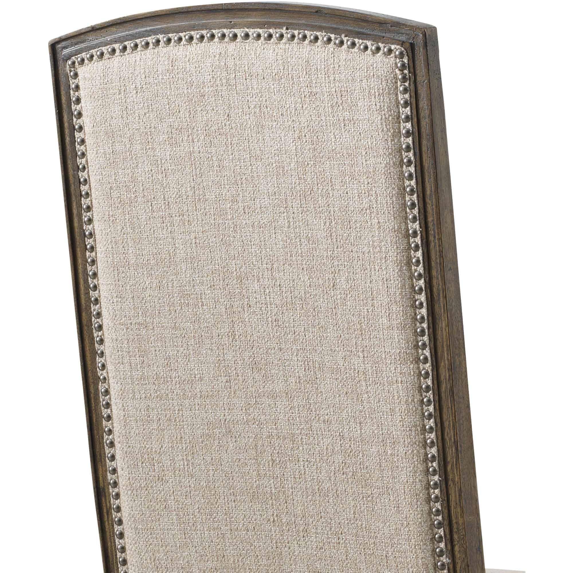 Features: While the Insignia Arm Chair has an insignia pattern on the front and back, the Side Chair is offered in a plain fabric without the insignia.