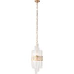 Sleek, modern, and effortlessly sophisticated, the Rhodes Chandelier is a statement piece designed to illuminate with style. Crafted from exquisite glass and finished in radiant gold, this chandelier exudes contemporary elegance while adding a warm, inviting glow to any space. Comes with 6′ chain.