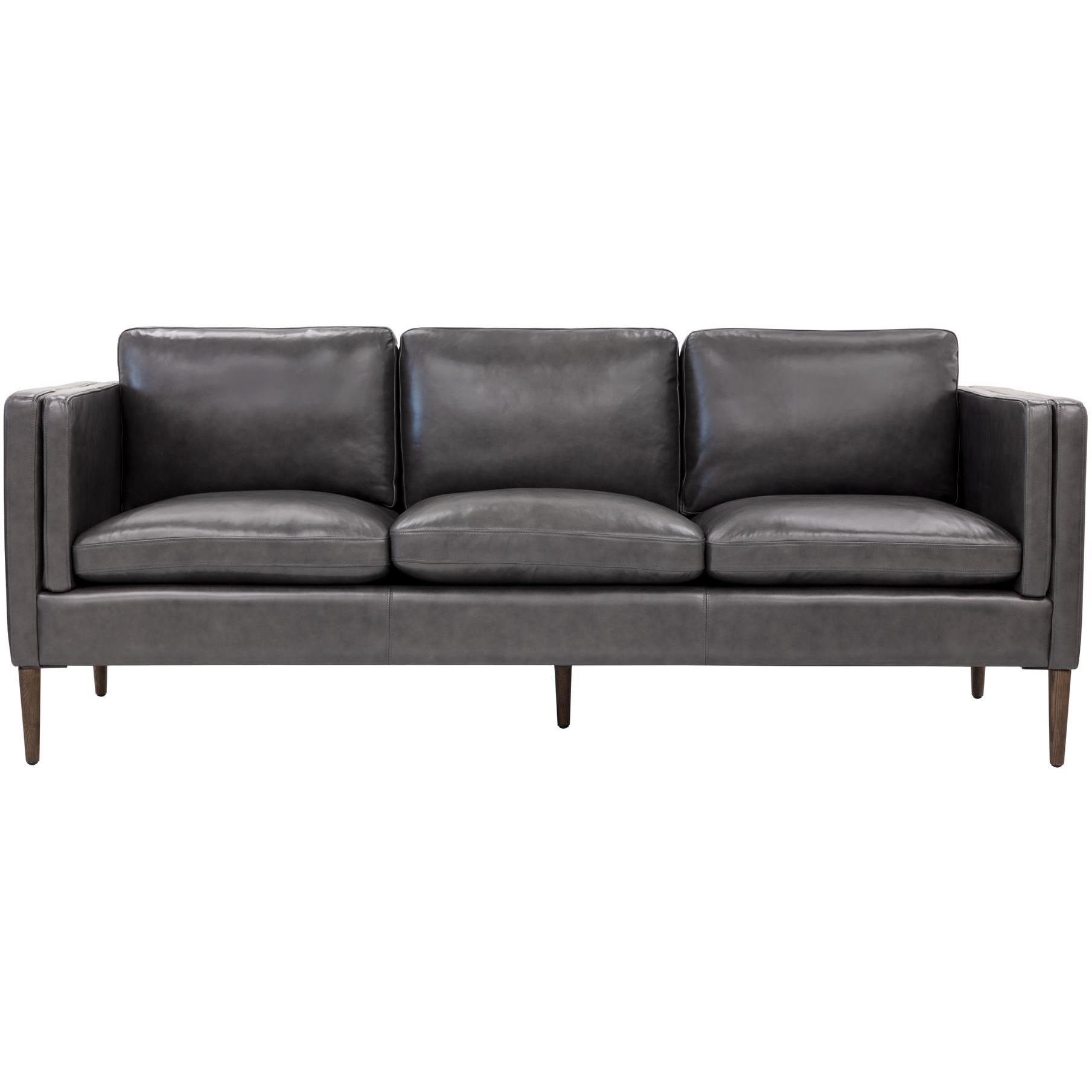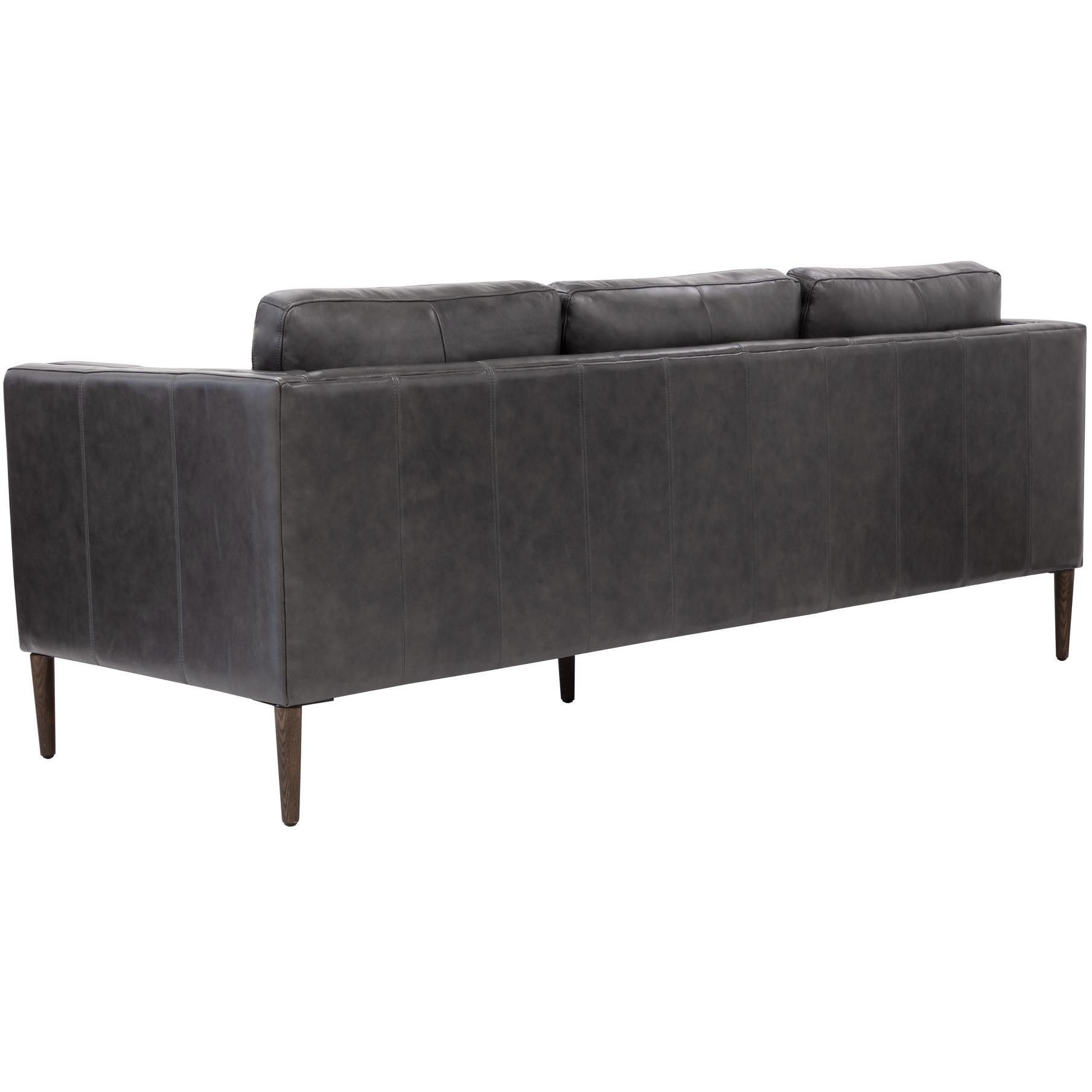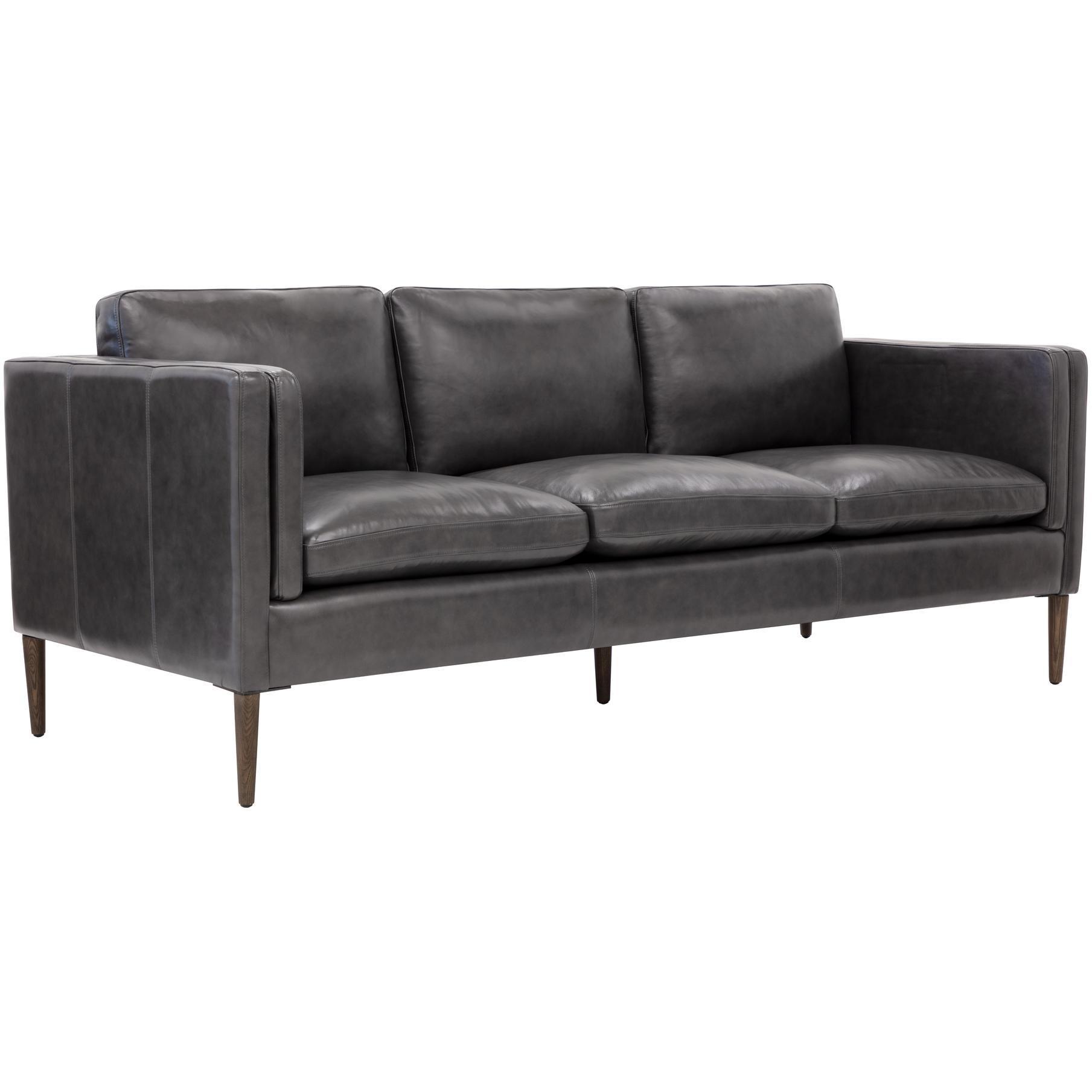Create a stylish and comfortable space with this modern sofa. Designed with a sleek silhouette in cortina black leather and dark brown solid wood legs.