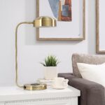 Holding a perfect balance of cosmopolitan simplicity and retro design inspiration, this table lamp elevates any room it’s set within. In a contemporary interior, it pairs best with streamlined decor elements and a neutral palette. Meanwhile, in the mid-century modern home, decor and accessories with rich hues allow the antique brushed brass finish to pop. Whether in an office or living space, this table lamp with its integrated charging pad for smartphones sets the mood for the room.