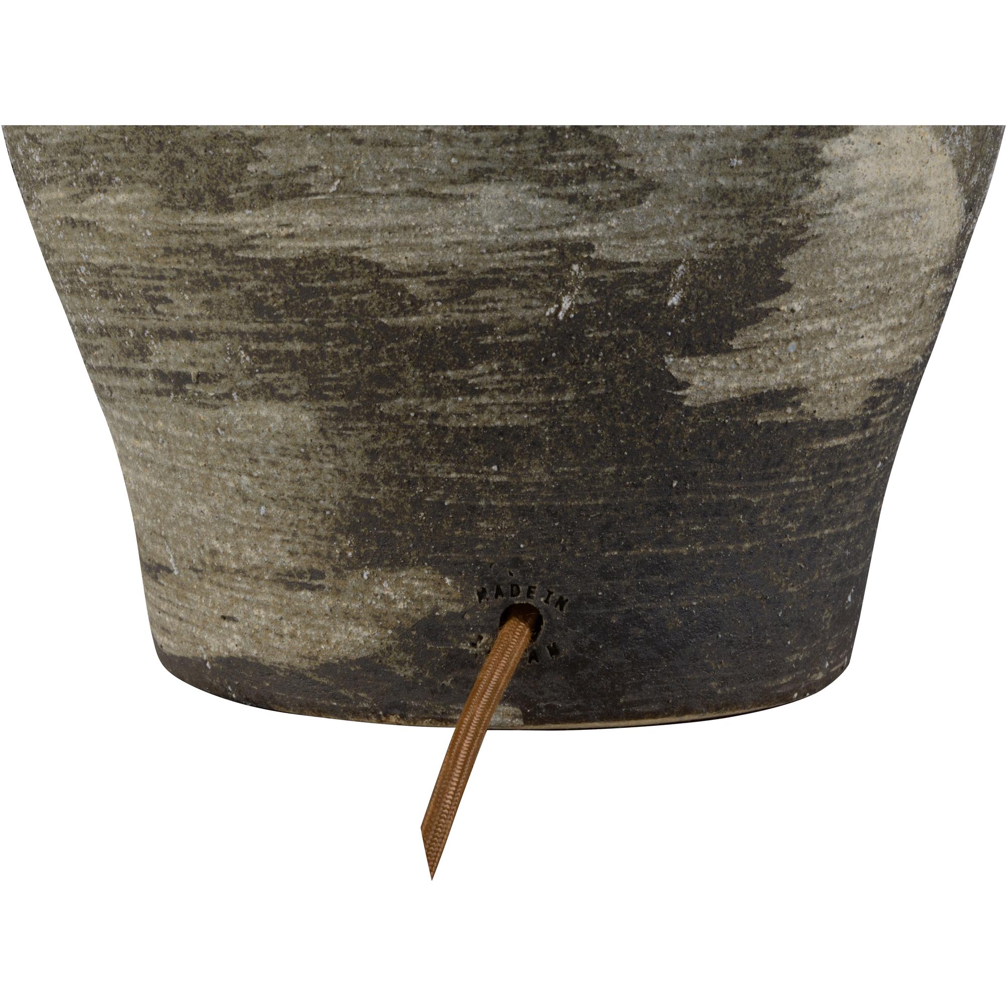 The Riku Table Lamp, part of the Shiga collection, offers a modern interpretation of traditional Japanese artistry, combining raw clay with a smooth drip glaze. The hand-turned ceramic body features a natural, earthy finish that highlights the organic texture of the clay unique to the Shigaraki region, while the glossy indigo glaze flows down the surface. This fusion of rough and refined elements makes the Riku Lamp a unique statement piece that blends timeless craftsmanship with contemporary design.
