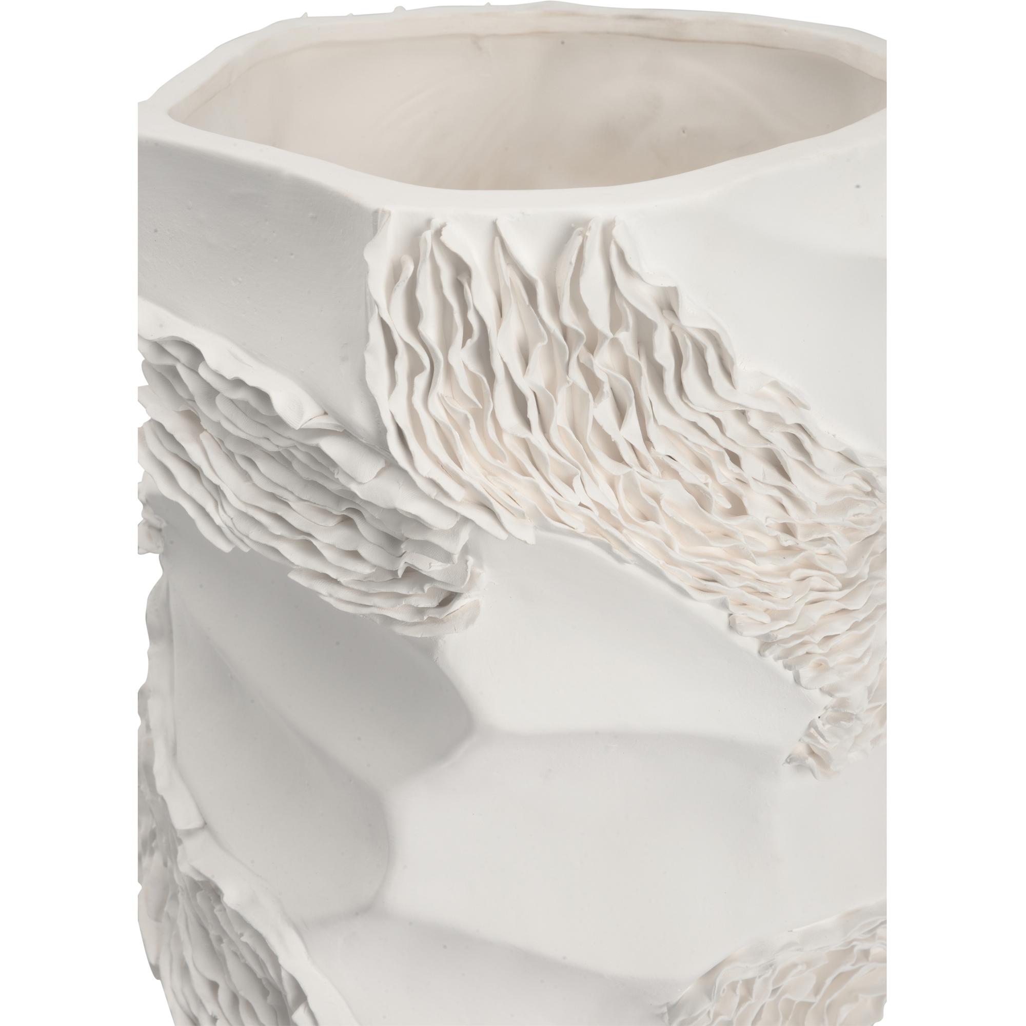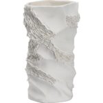 The Ripple Ceramic Vase boasts an organic shape with exquisite ripple detailing, crafted from smooth white ceramic.