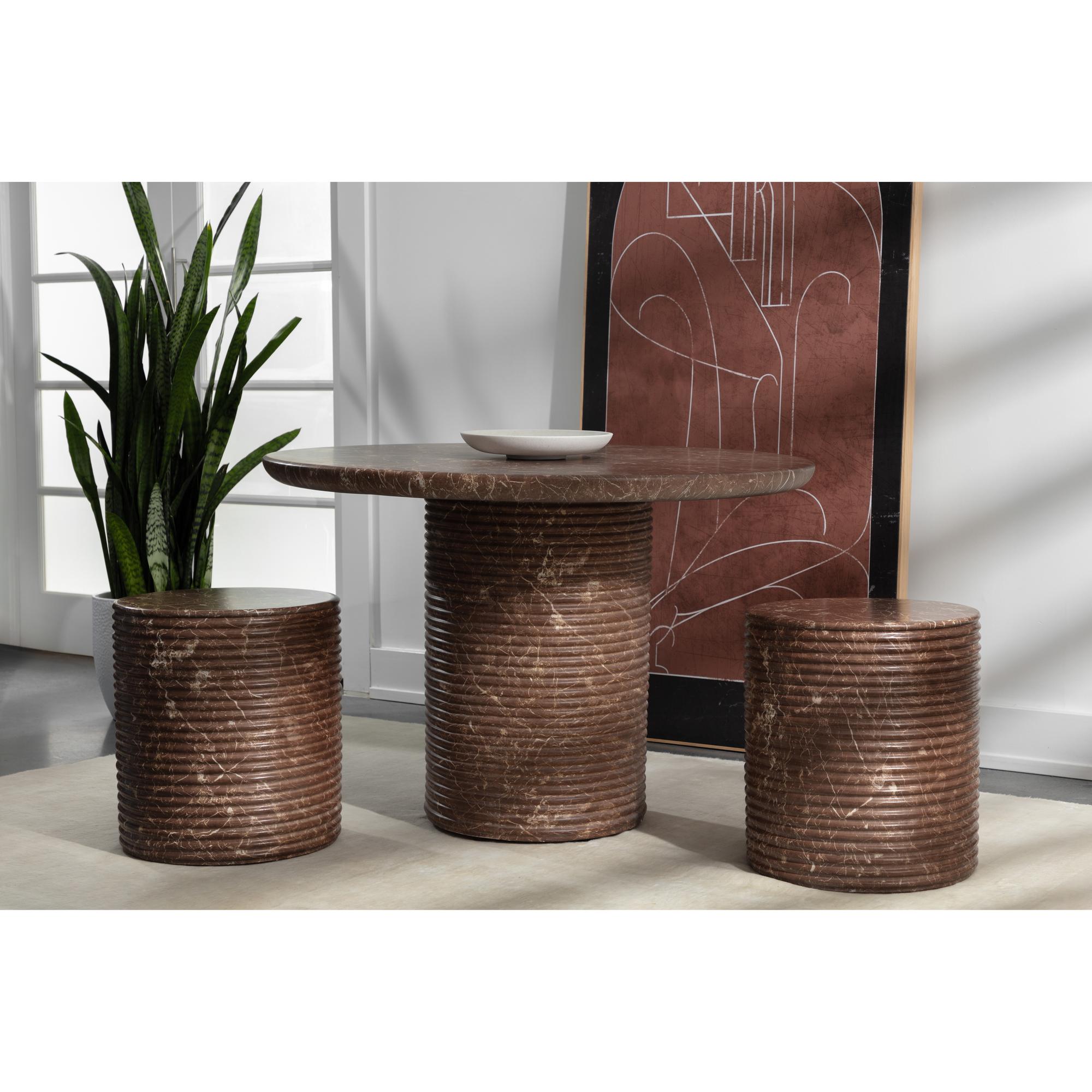 A captivating show of contemporary invention and style, the Riva Dining Table is a sight to behold. A standout in the oasis of your choice, this stunning concrete build is hand-finished with a brown and beige marble effect that is achieved using a water transfer printing technique.