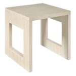 The River Rock End Table features a clean, architectural design with its open frame and sleek silhouette. Finished in a light and airy River Rock, this table adds a touch of modern sophistication to any living space. Its minimalist form and natural wood grain create a versatile piece that complements a variety of décor styles.