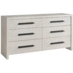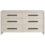 Crafted in a light and airy River Rock finish, the Six Drawer Dresser blends natural texture with clean, modern lines. Its framed drawer fronts and sleek hardware create a sophisticated storage solution, perfect for adding both functionality and a touch of architectural detail to your bedroom.