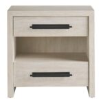 The River Rock Two Drawer Nightstand offers bedside convenience with a touch of architectural elegance. Finished in a light and airy River Rock, its clean lines and framed drawer fronts create a sophisticated look. The open shelf and two drawers provide practical storage, making it a stylish and functional addition to your bedroom.