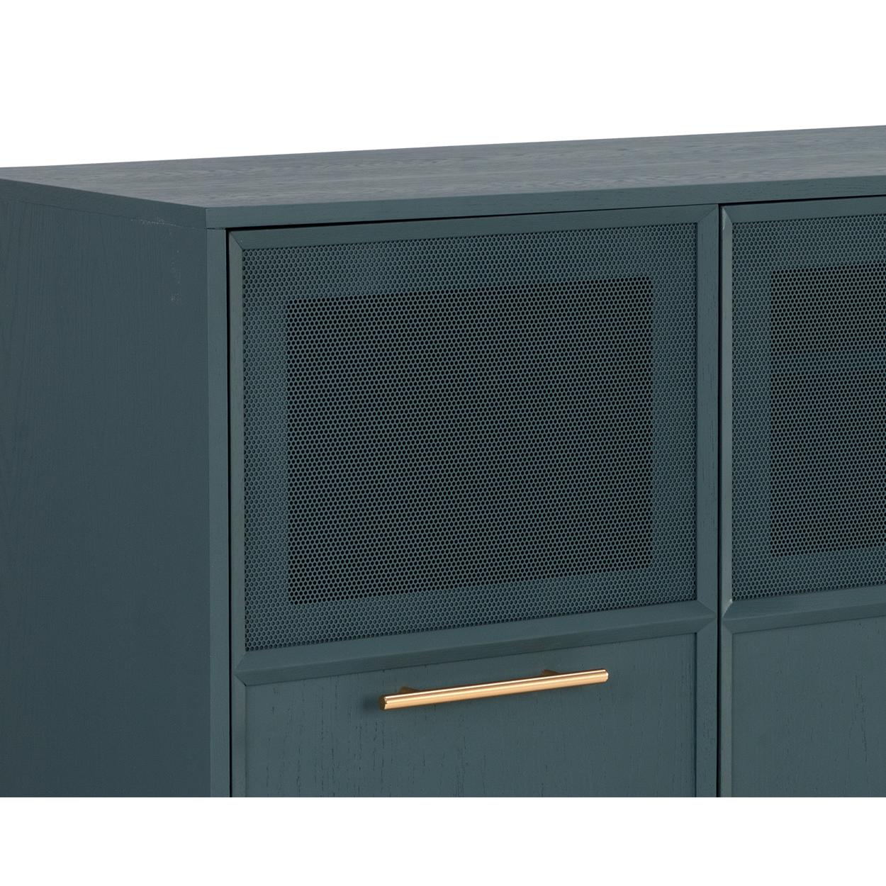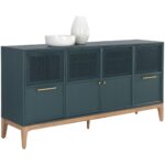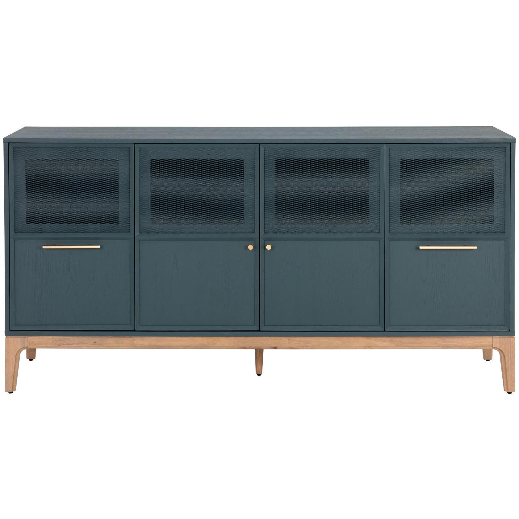 With a timeless design, the Rivero Sideboard is a delightful addition to any space. Crafted with a teal oak veneer for a subtle pop of colour, and complemented with a light wash rubberwood base. Includes ample storage with metal hardware in a gold finish. As wood is an organic, porous material, these pieces will contain natural variation of texture and may also exhibit fine indentations and cracks. Wood pieces will also display a disparity of colour and grain, and visible knots and burls that add to the character of each piece.