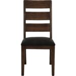 Experience the timeless elegance of the Riverwood Chair. Crafted from Melina and pine wood, this chair features a beautiful translucent lacquer finish in a rich brown shade, highlighting the wood’s natural beauty and unique grain. The classic ladder-back design adds a charming touch, while the generously cushioned black fabric seat provides exceptional comfort and style. With its sturdy legs and minimalist aesthetic, the Riverwood Chair effortlessly enhances your dining room or complements any space in your home.