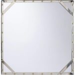 This silver metal mirror is accented with brass rivets, blending industrial edge with a touch of warmth for a striking, modern look.