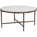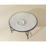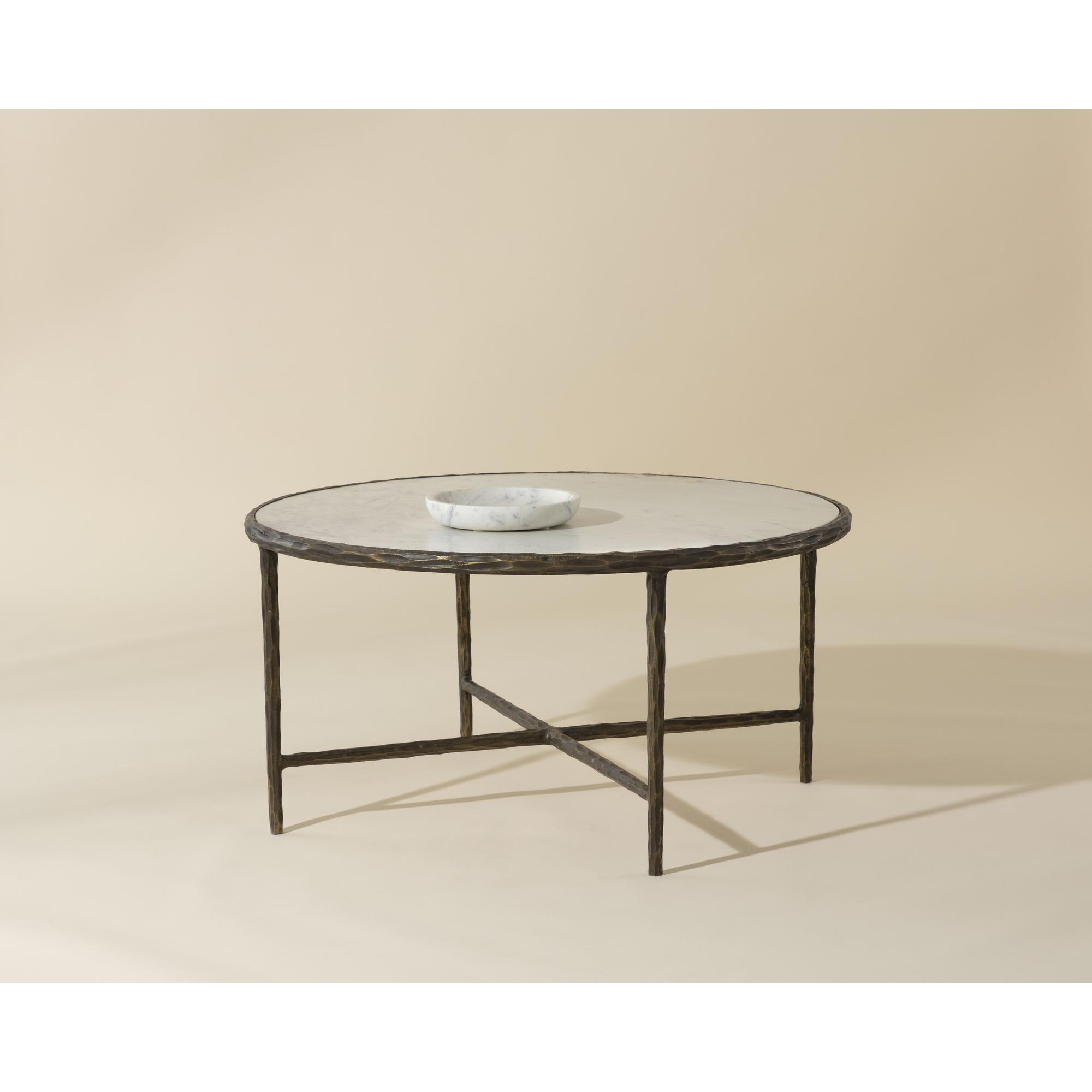 Refined white Banswara marble balanced with the artful look of hand-hammered metal elevates the traditional style of the Riyaz Coffee Table. Its rounded shape and complimentary tones allow this coffee table to enhance any living space.