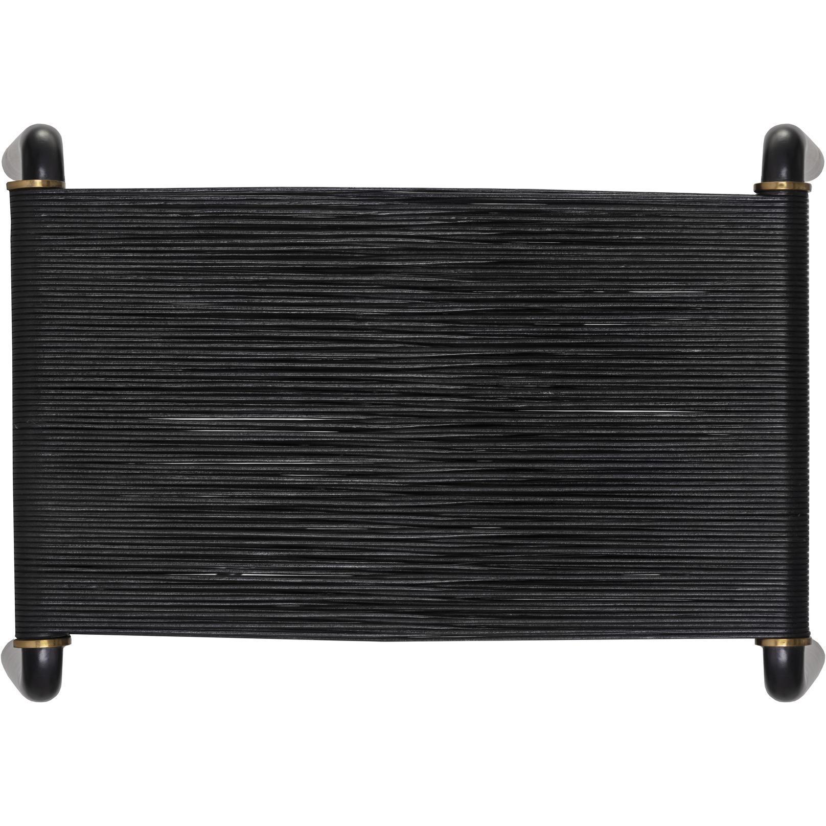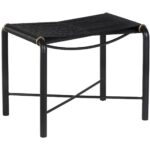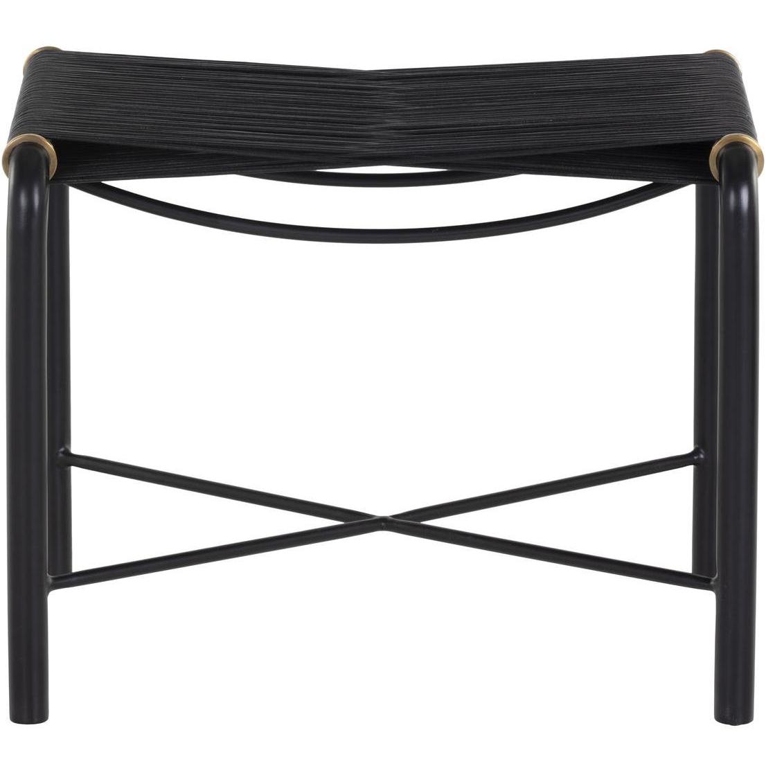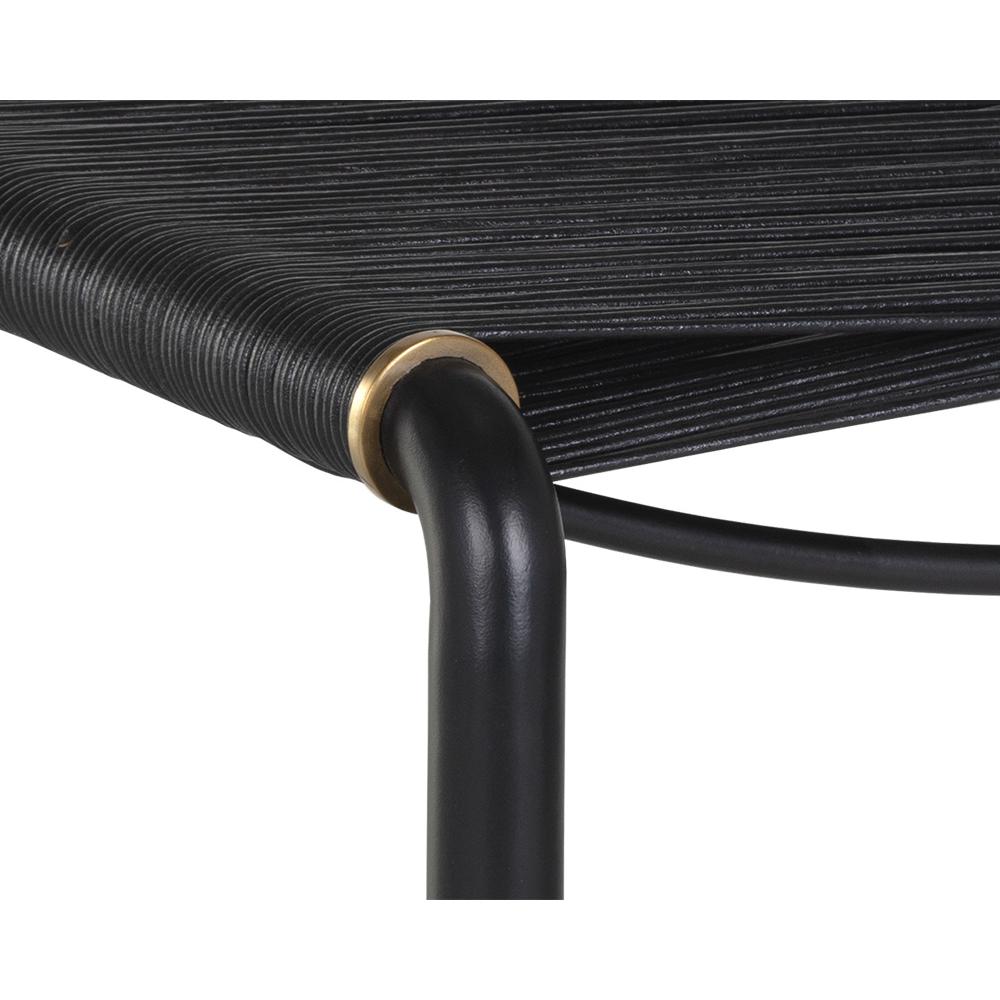 An intriguing stool that is designed with attention to detail. Features a black leather cord seat with a black steel frame. Powder coated gold accents complete the look. A stunning addition to foyer, living and bedroom spaces. Made in India. With refined craftsmanship, this design was brought to life by skilled local artisans. By nature, these materials develop unique imperfections such as fissures, markings and colour variations for a truly one-of-a-kind piece.