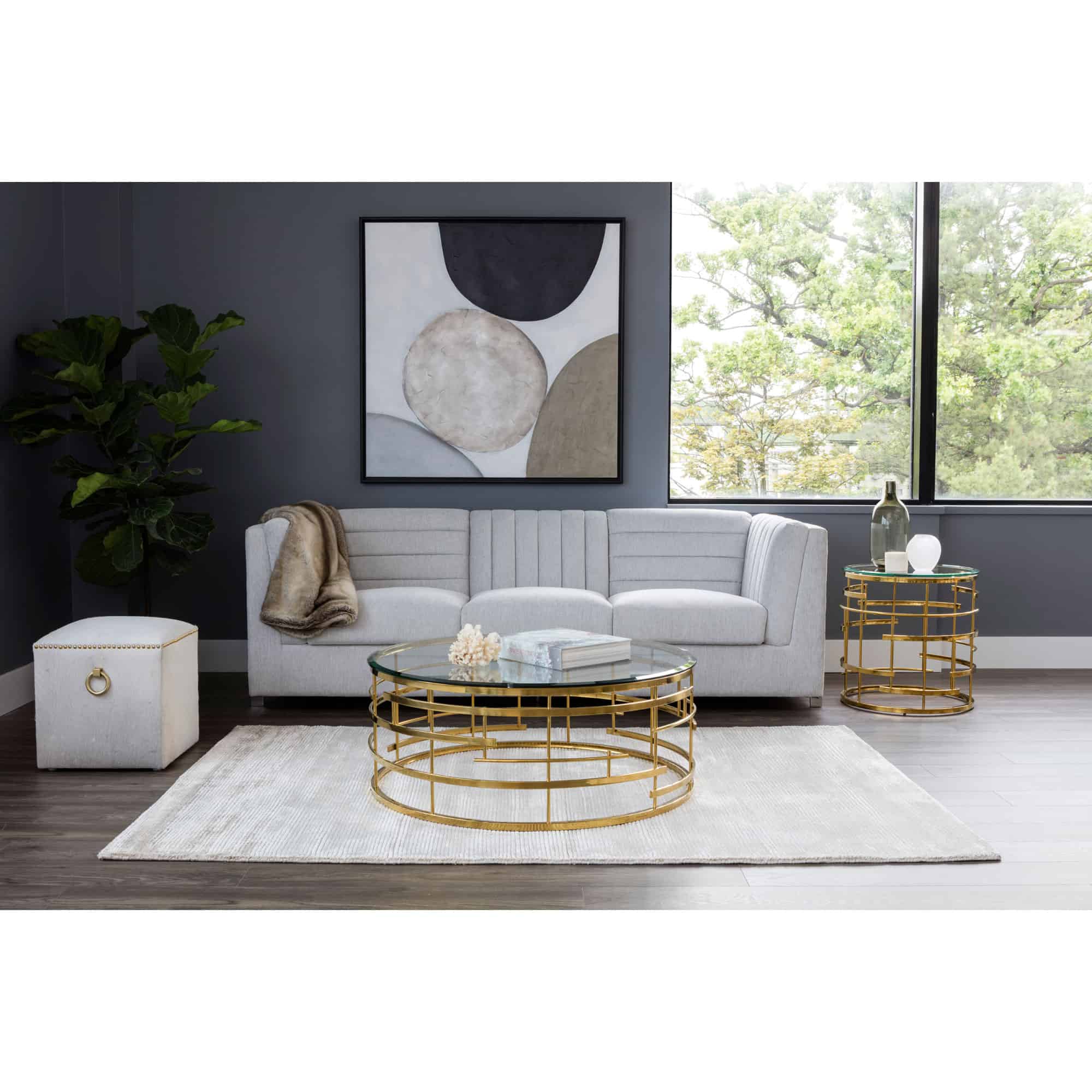 A textured painting in a neutral palette with four bold circular shapes. Features a black wood frame with a one-inch canvas. Each artwork is hand-painted and will feature slight variations that make every piece unique.