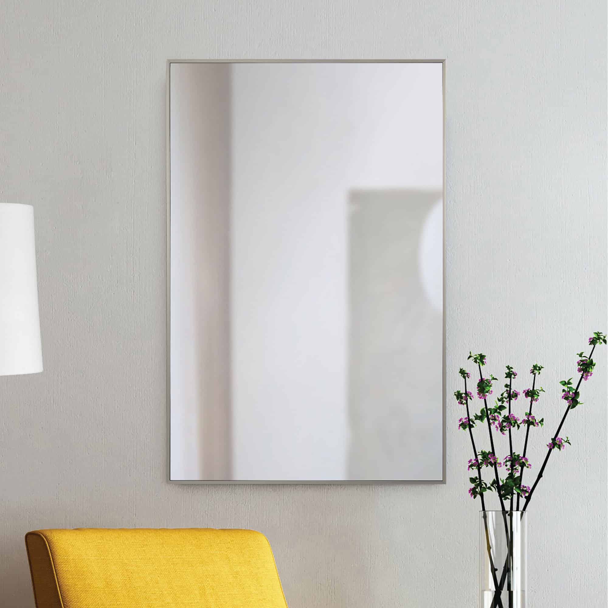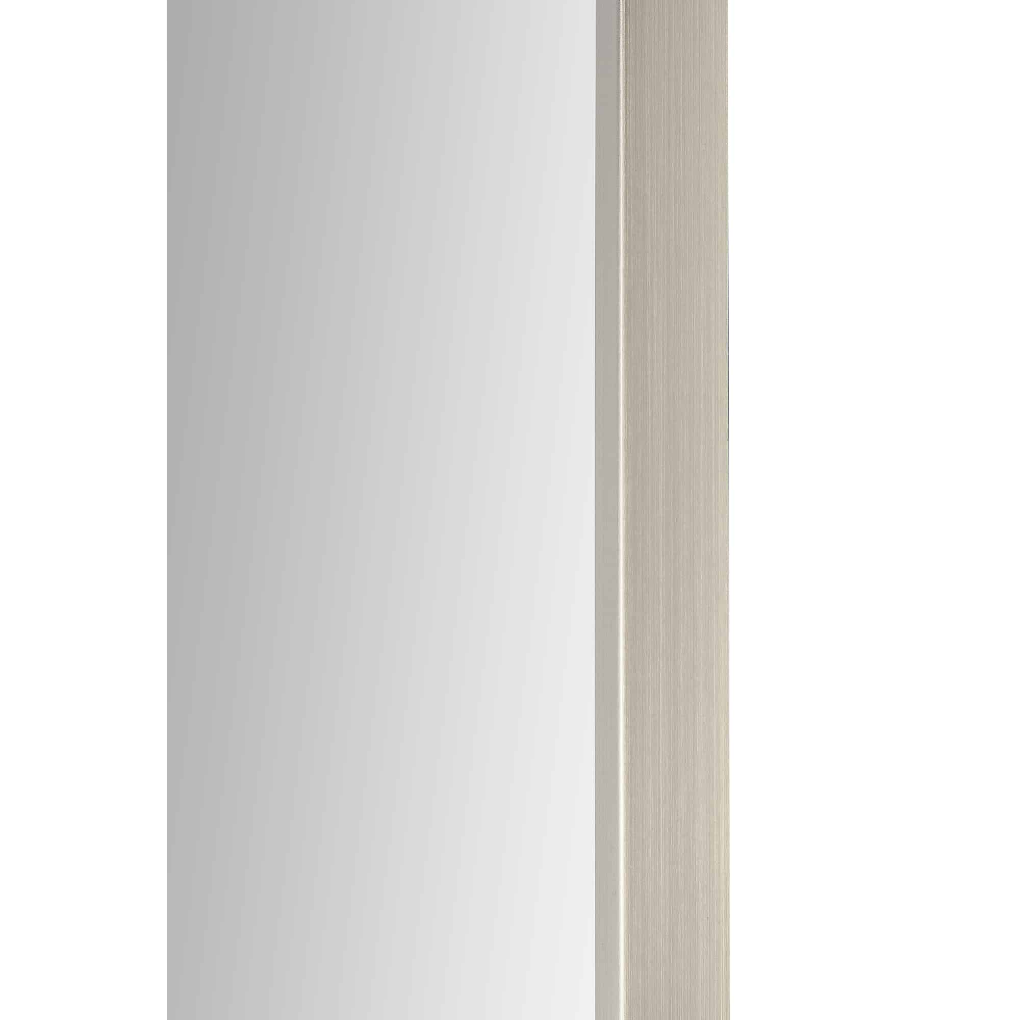 Simplicity at its finest, this mirror with a satin nickel plated-iron frame is free of embellishment but never dull. Providing endless versatility for placement within the home, it serves one well in the bathroom, living room, bedroom, or entryway. THis mirror allows a room to expand within its reflection.