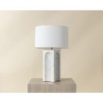 Solid white Banswara marble gives the Rohe Table Lamp a timeless presence. Arched grooves are hand-carved across the lamp’s rectangular base, lending a sophisticated geometrical profile that is captivating from every viewpoint.