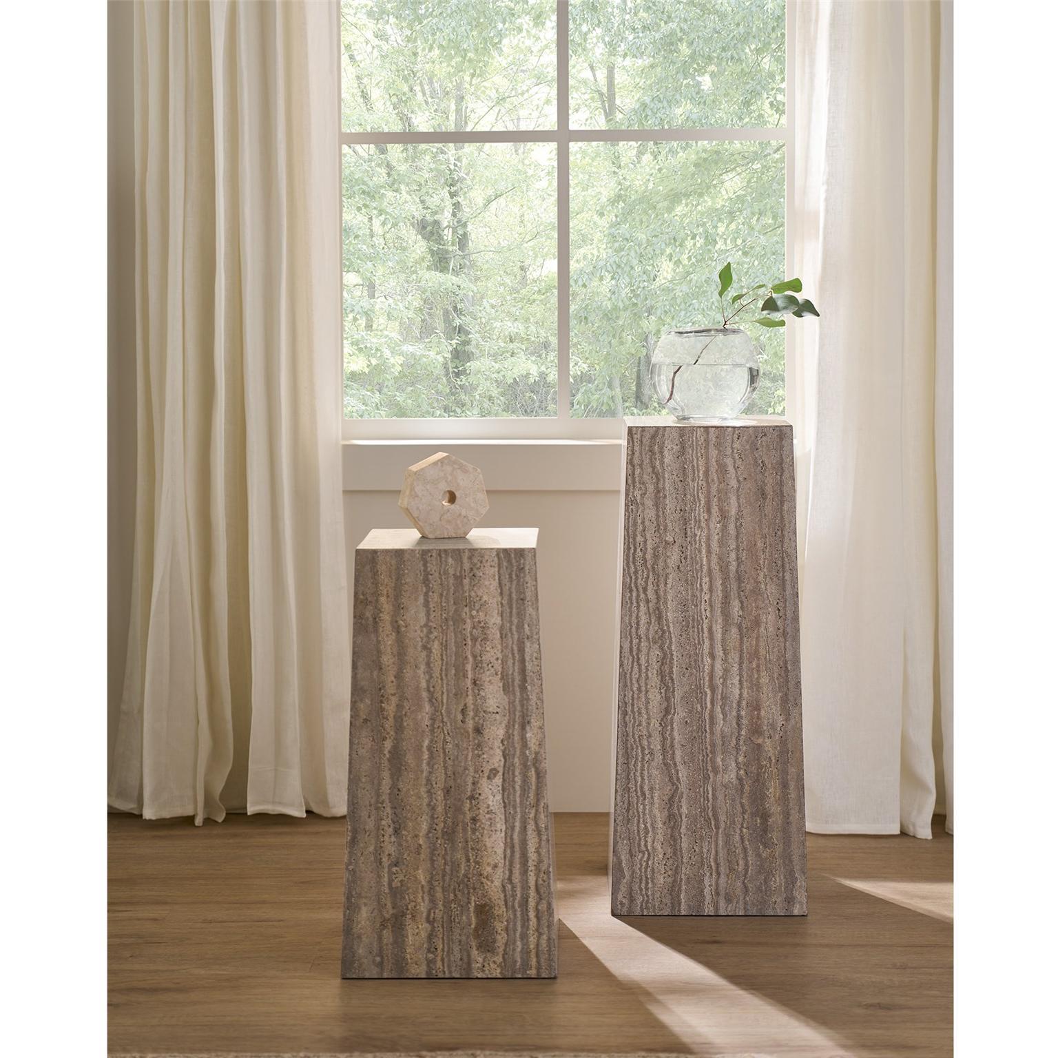 The Rollier Spot Table is a minimalist masterpiece that exudes modern elegance. Its slender silhouette, crafted from exquisite Gray Travertine, creates a striking visual impact. Perfect for holding a single cocktail or a small decorative object, this versatile table is available in small, medium, and large sizes to suit your space. A captivating addition to any interior.
