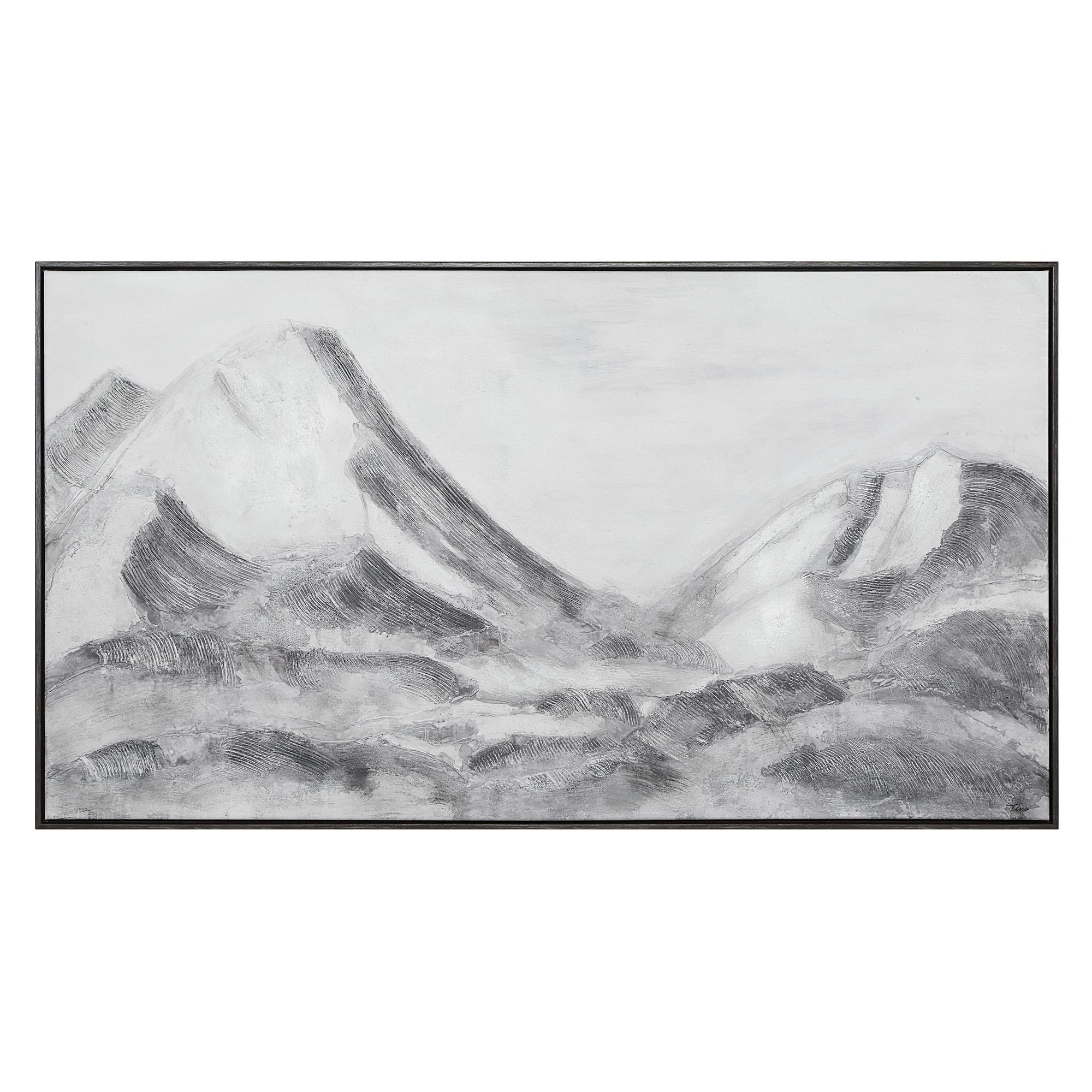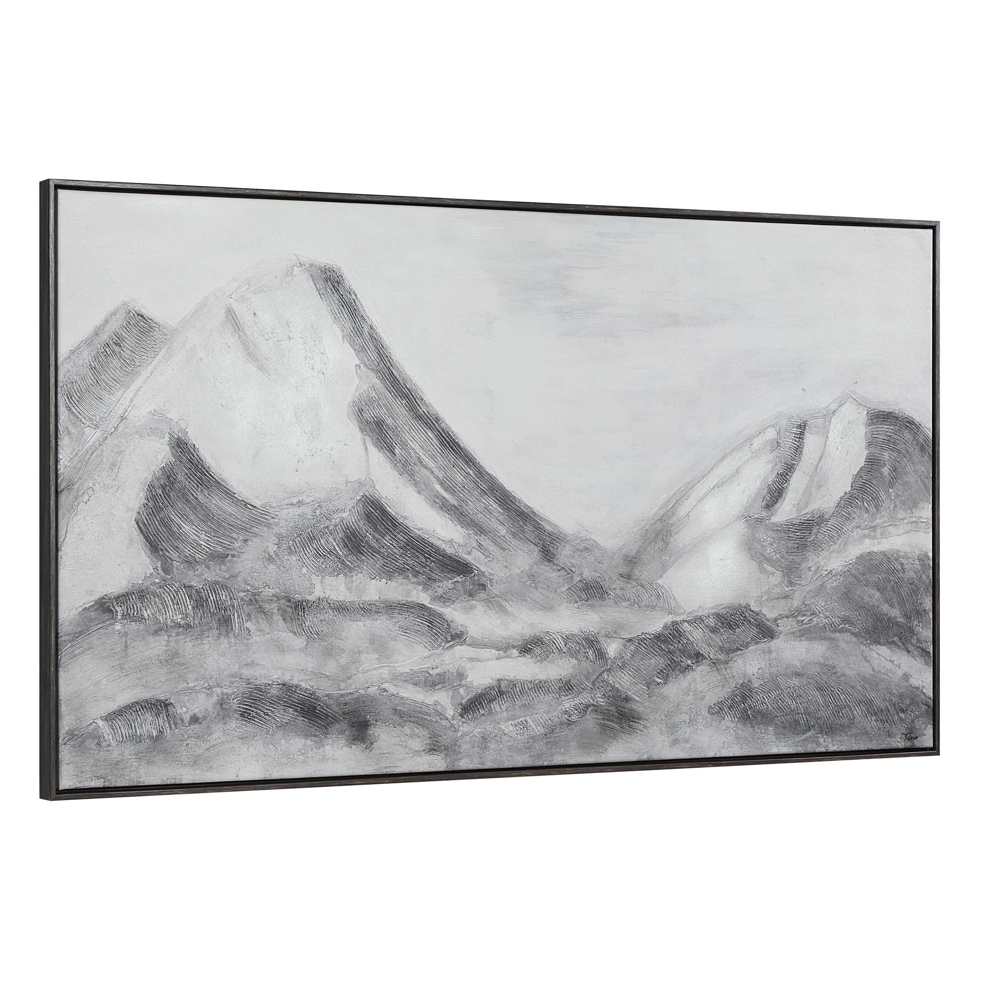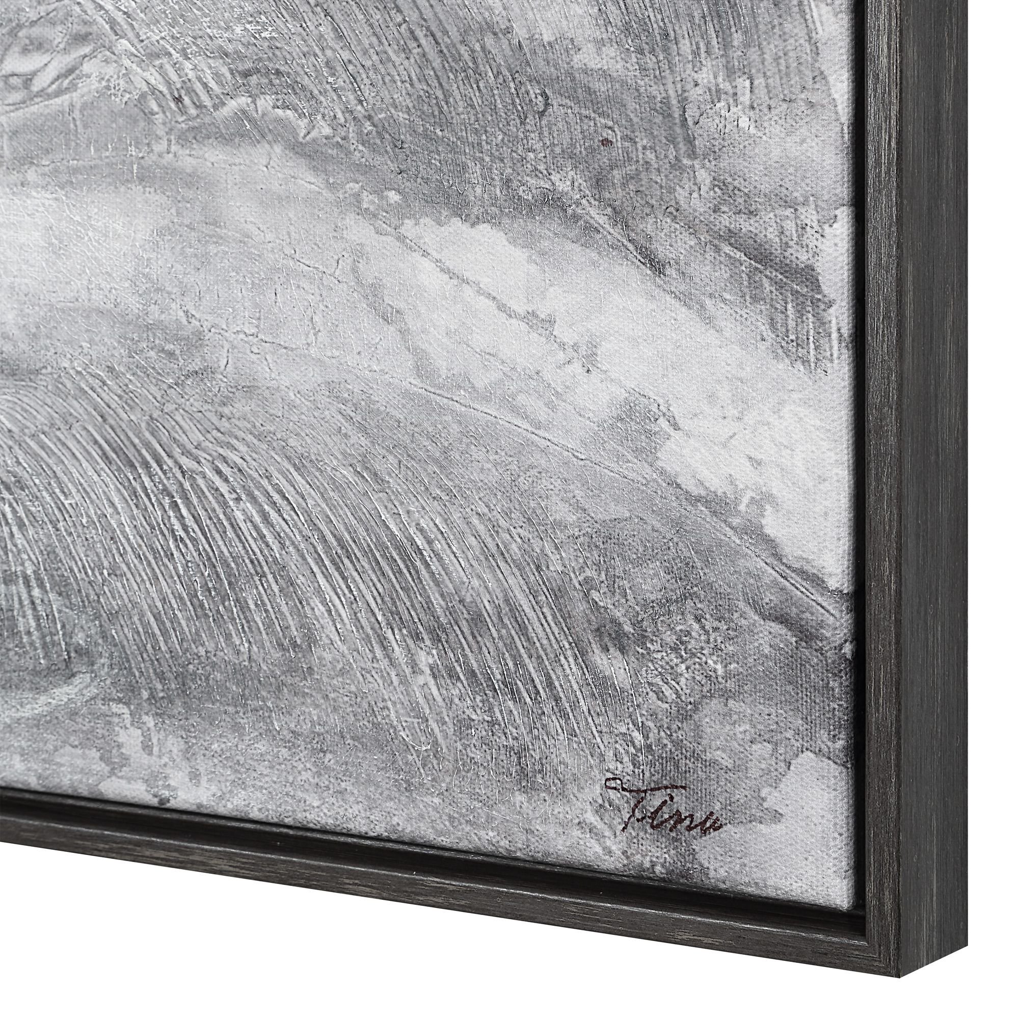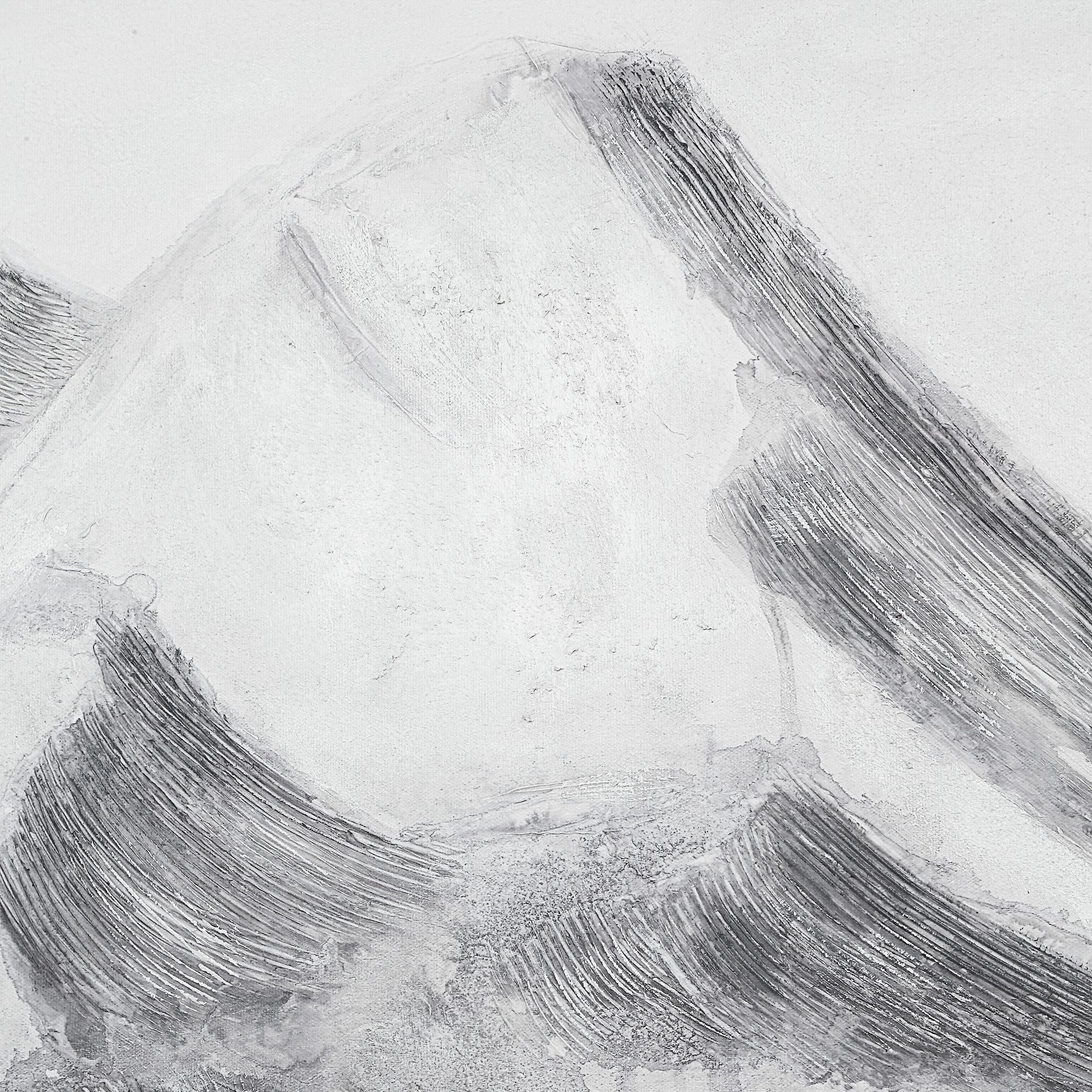A vision in shades of grey, this beautiful landscape painting will bring loads of charm to any interior. Framed in grey wood, its high-quality cotton-linen canvas features hand-painted sand gel accents for a textured effect, and its oversized design makes it perfect for making a bold impact.