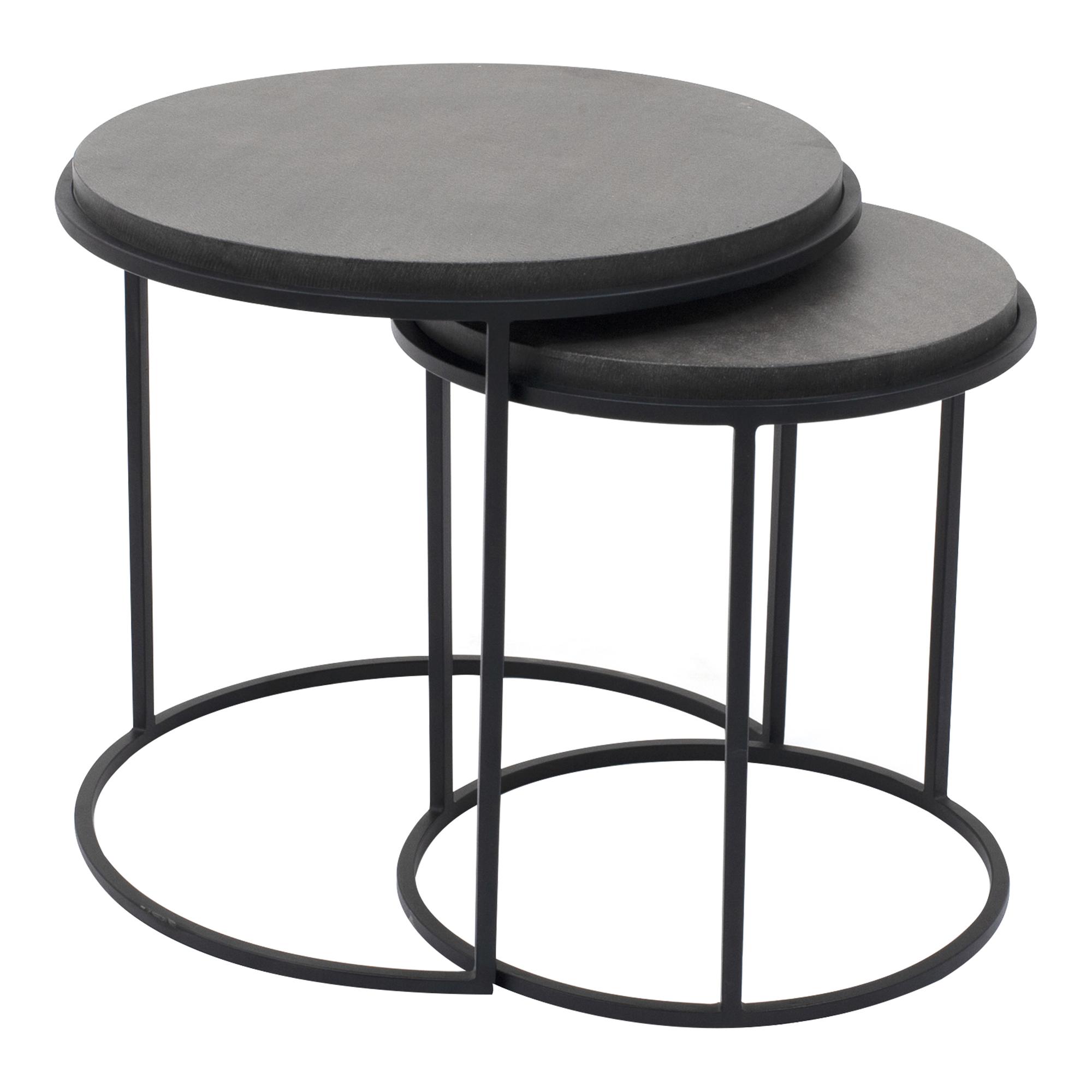 With a lava stone tabletop and iron base, the Roost nesting tables bring a contemporary modern edge to your space. Nesting tables allow for versatile use in several parts of your home. Separate them for added side tables or store them together to save on space.