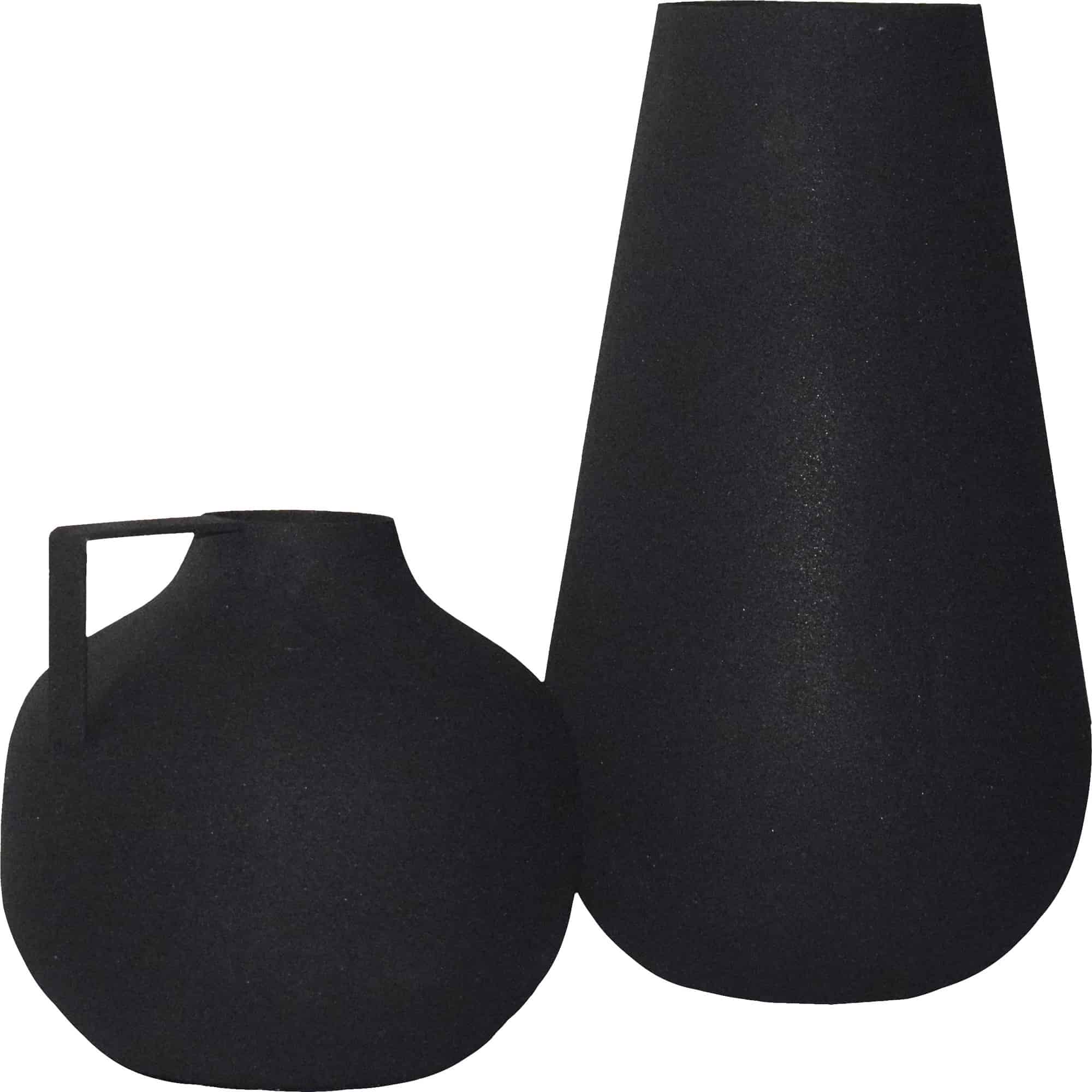 Whether set in the industrial interior or the modern living space, this set of vases will complete the aesthetic appeal. While both styles are traditional at first glance, the powder-coated iron build and textured matte black finish bring a contemporary touch. The differing heights bring variety to the display.