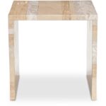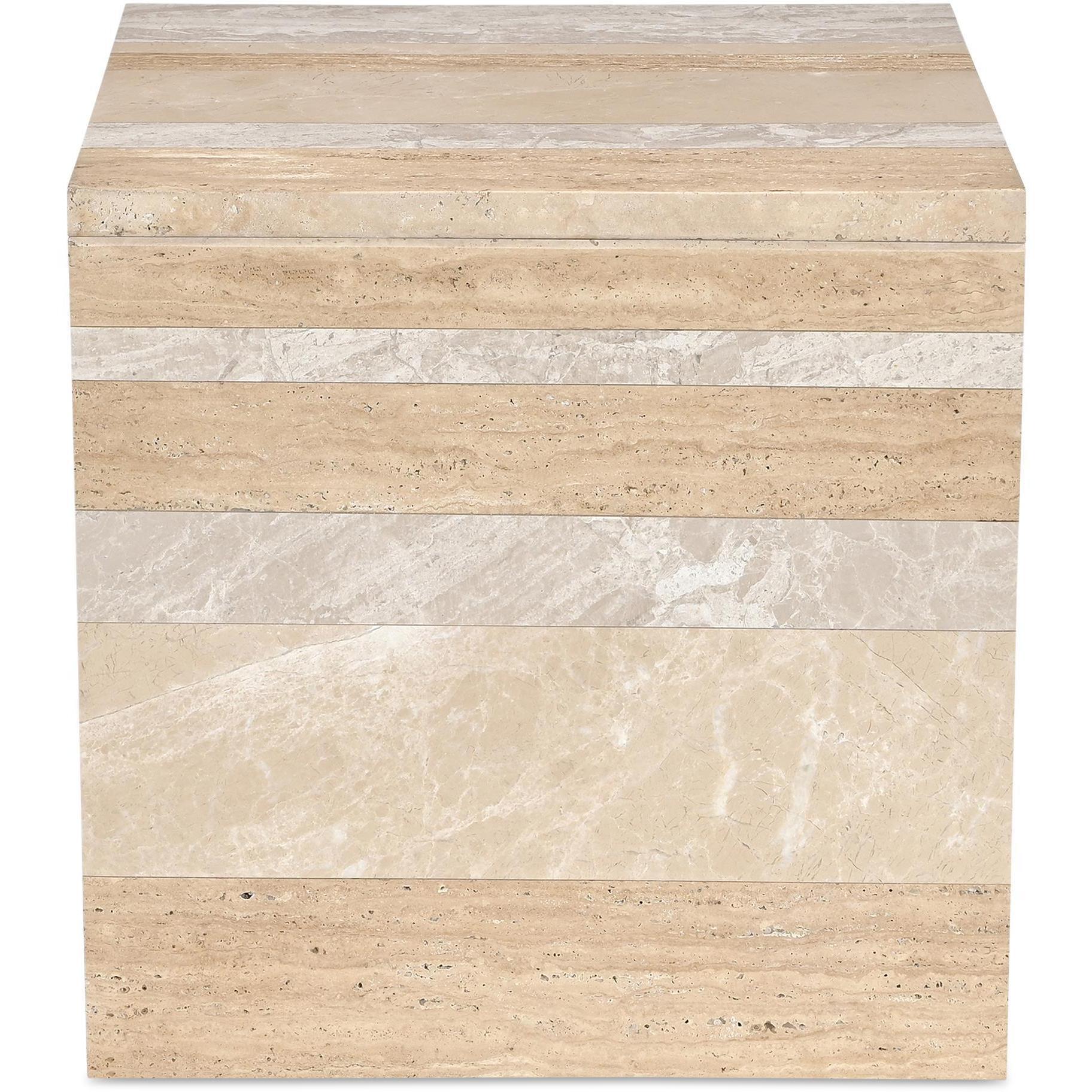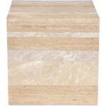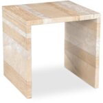 The bold simplicity of the waterfall design speaks volumes with the Rosa accent table’s versatility. The table is singularly impactful and crafted from beautiful sections of different types of neutral-toned marble with a generous scale and thickness to create a substantial look. This piece commands attention as a statement of natural elegance.