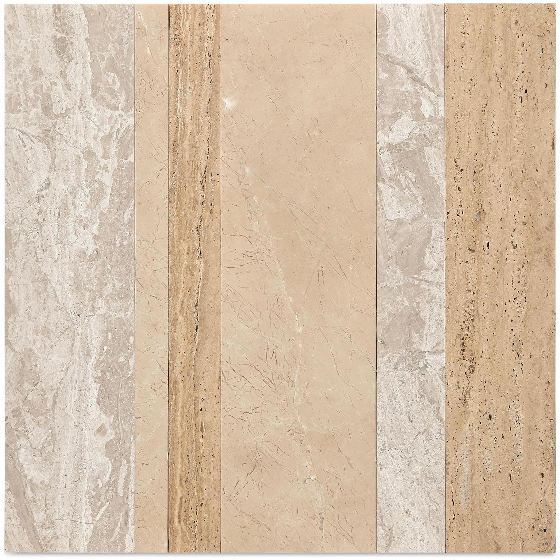 - Crafted from Italian beige travertine, panther stone & grey barbarry marble & iron